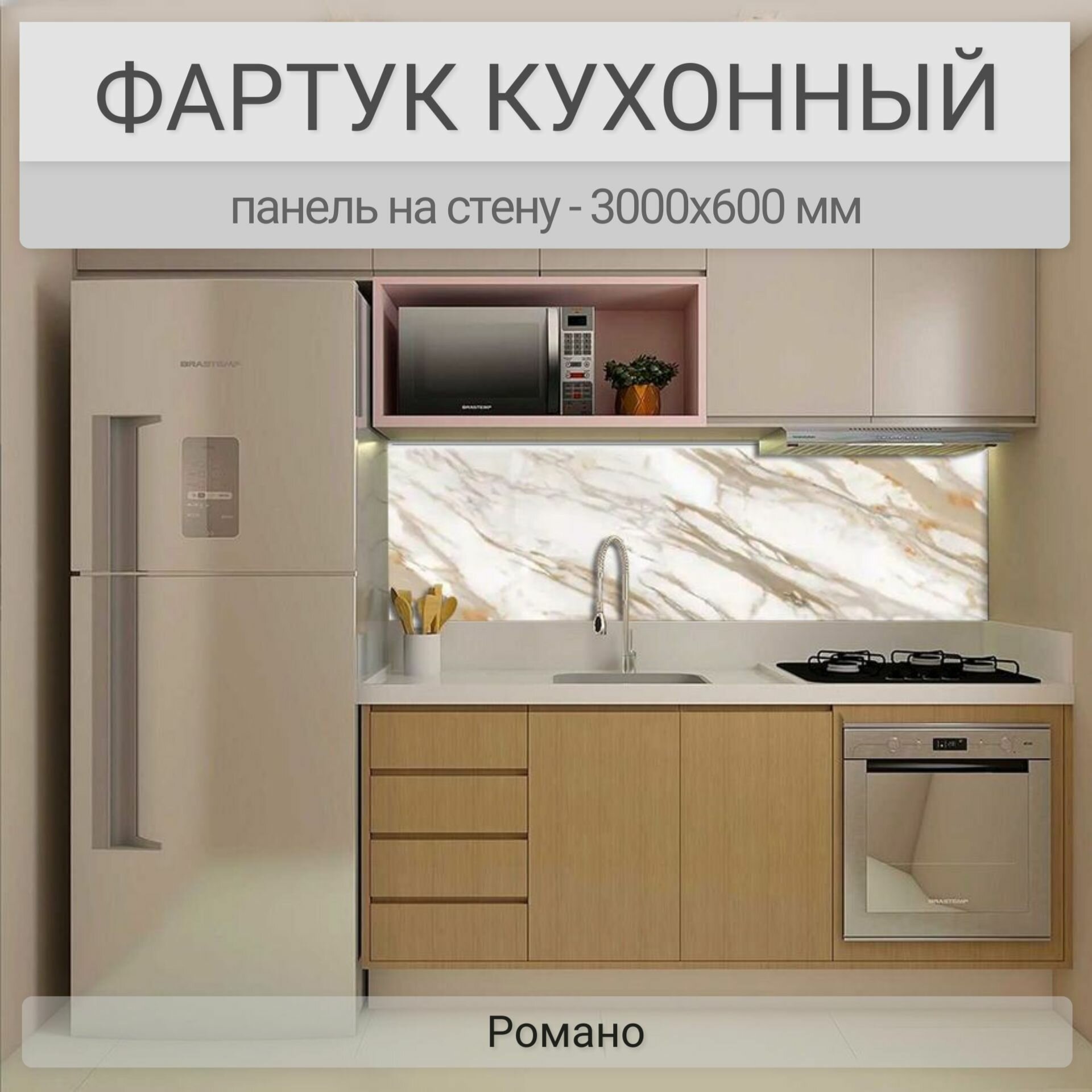СохранитьФартук для кухни на стену 3000х600 мм, глянцевый Романо. Панель стеновая ПВХ влагостойкая декоративная интересное: