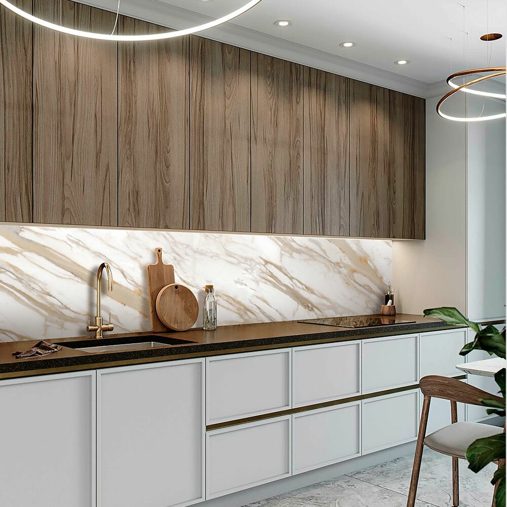 Фартук для кухни на стену 3000х600 мм, полуглянцевый Тиберия. Панель стеновая ПВХ влагостойкая декоративная