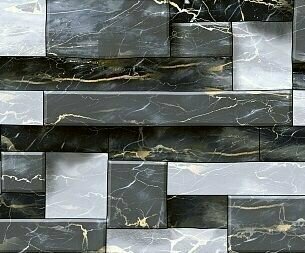 Фартук для кухни на стену 3000х600 мм, глянцевый Мрамор темный. Панель стеновая ПВХ влагостойкая декоративная