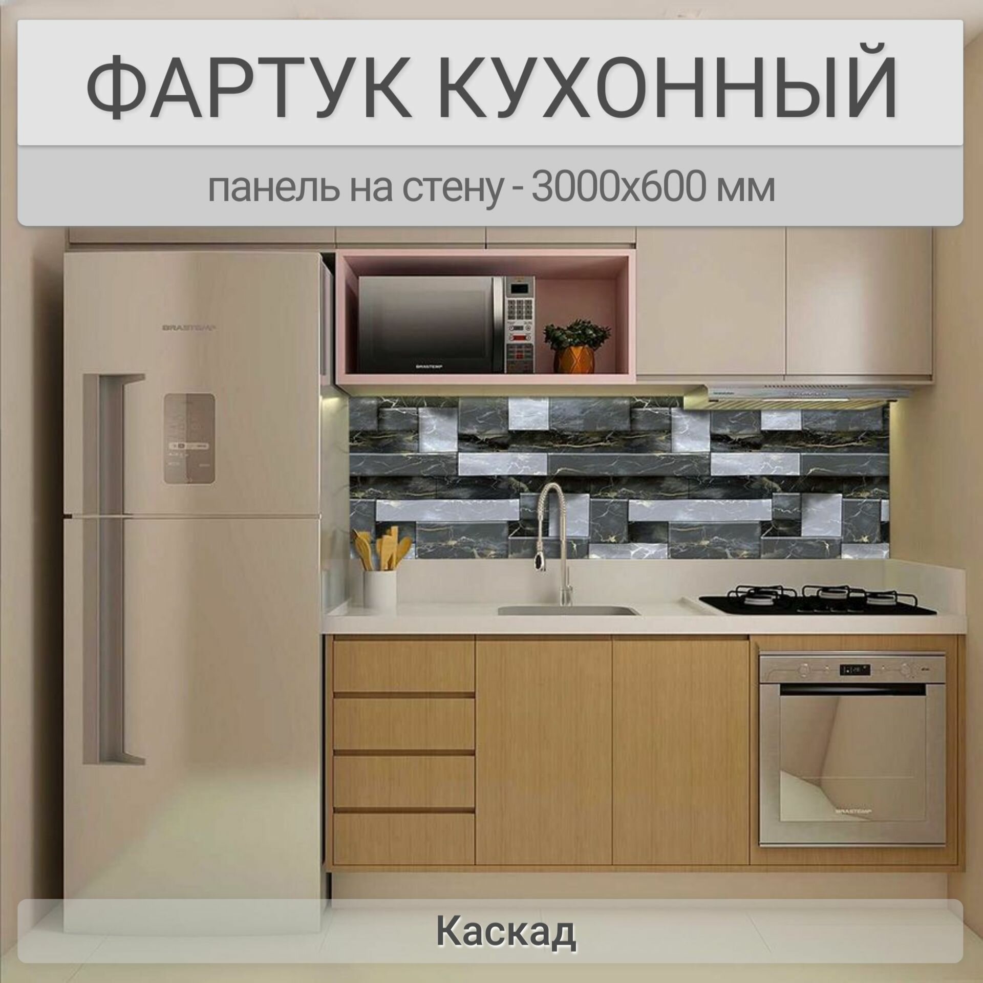 Фартук для кухни на стену 3000х600 мм, Каскад. Панель стеновая ПВХ влагостойкая декоративная