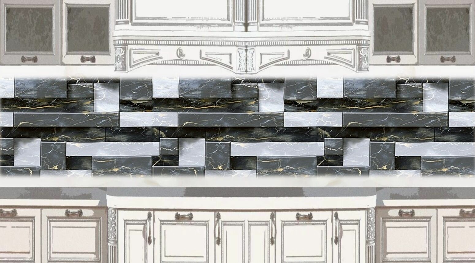 Фартук для кухни на стену 3000х600 мм, полуглянцевый Рецциато. Панель стеновая ПВХ влагостойкая декоративная