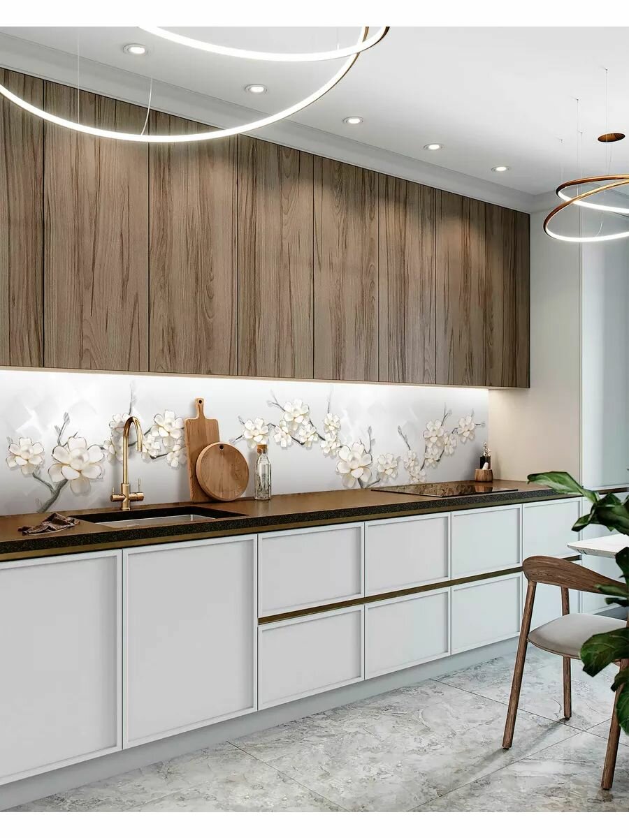 СохранитьФартук для кухни на стену 3000х600 мм, глянцевый Зимняя сакура. Панель стеновая ПВХ влагостойкая декоративная интересное: