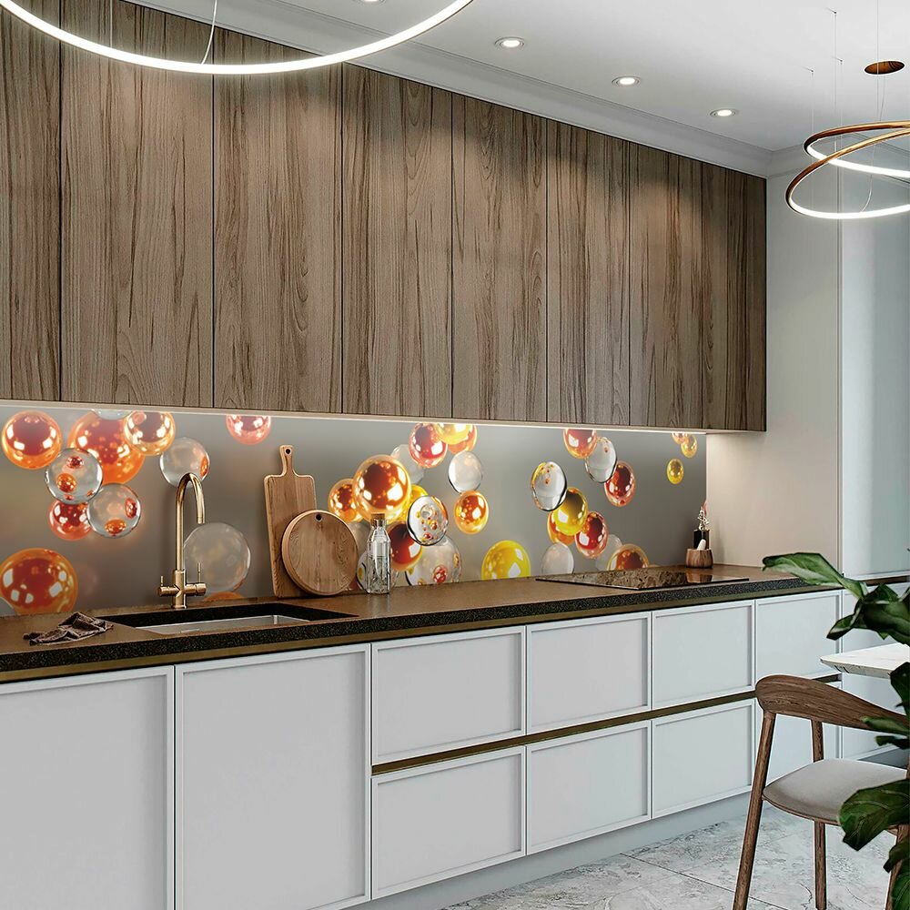 СохранитьФартук для кухни на стену 3000х600 мм, глянцевый Оранжевые пузырьки. Панель стеновая ПВХ влагостойкая декоративная интересное: