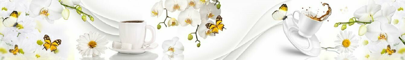 Фартук для кухни на стену 3000х600 мм, глянцевый Молочная орхидея. Панель стеновая ПВХ влагостойкая декоративная