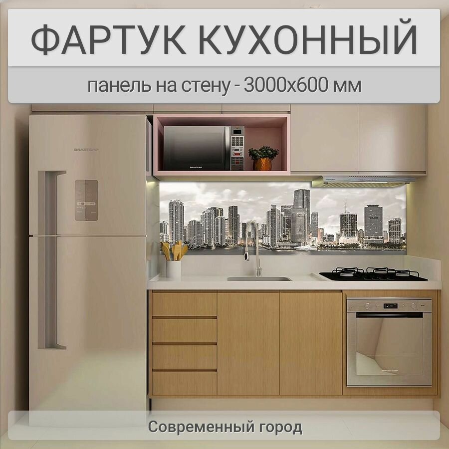 СохранитьФартук для кухни на стену 3000х600 мм, глянцевый Современный город. Панель стеновая ПВХ влагостойкая декоративная интересное: