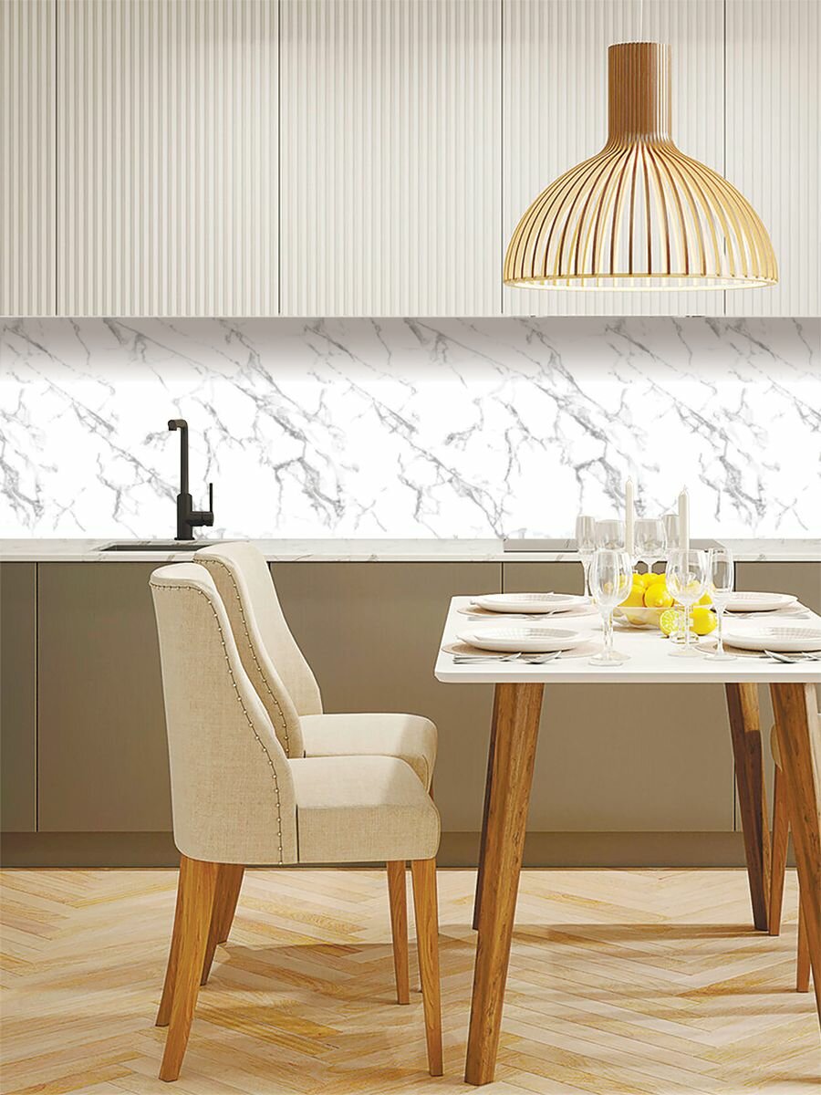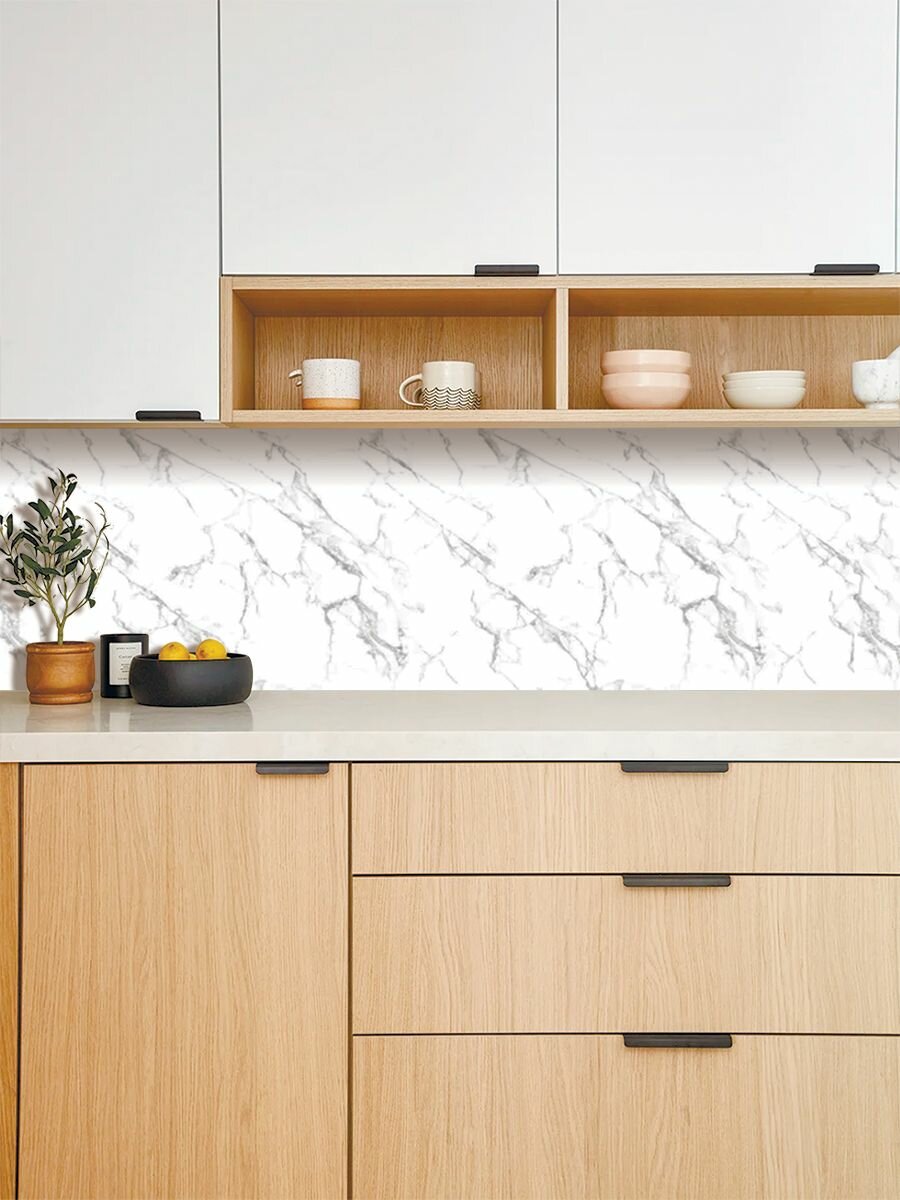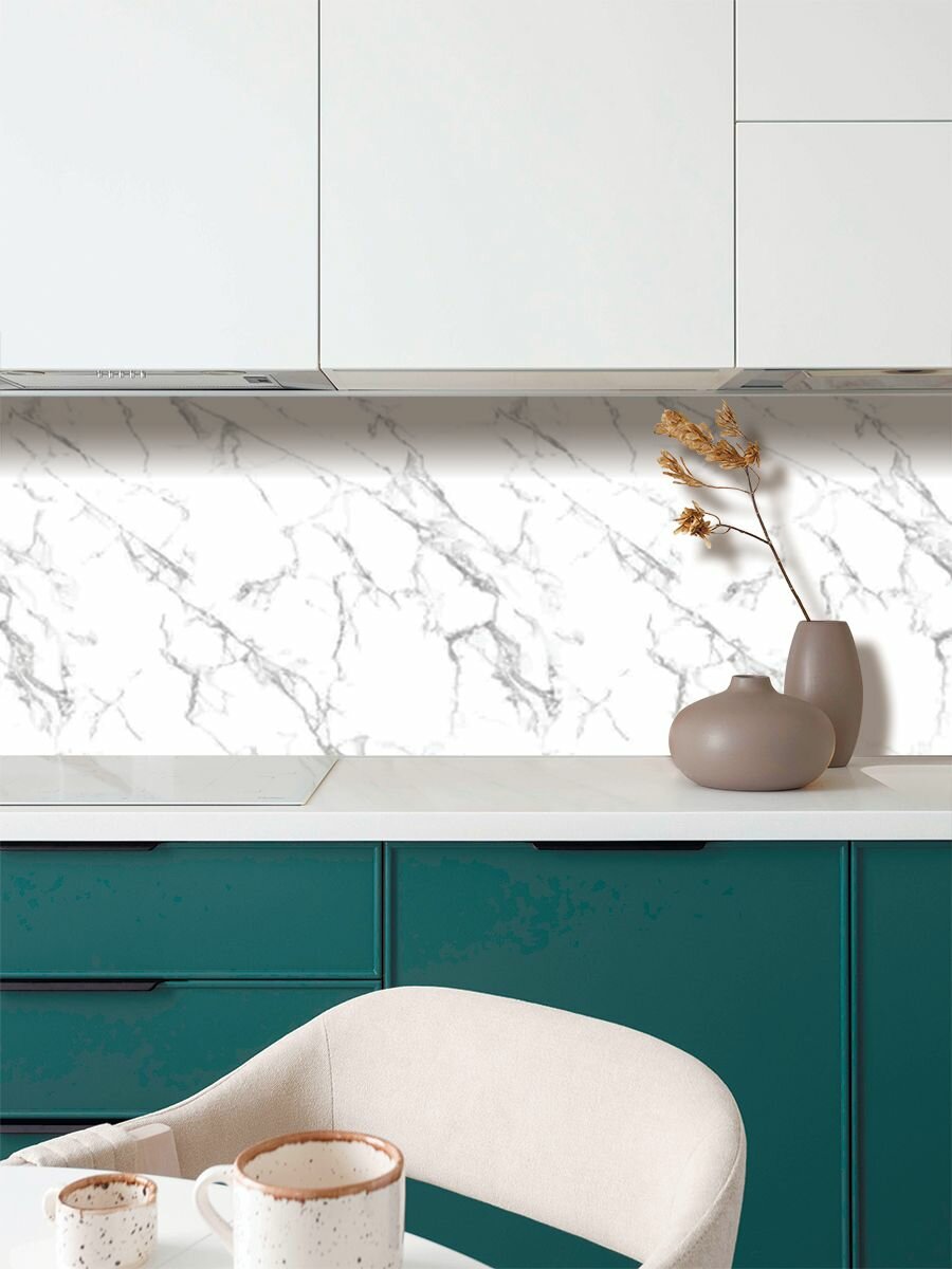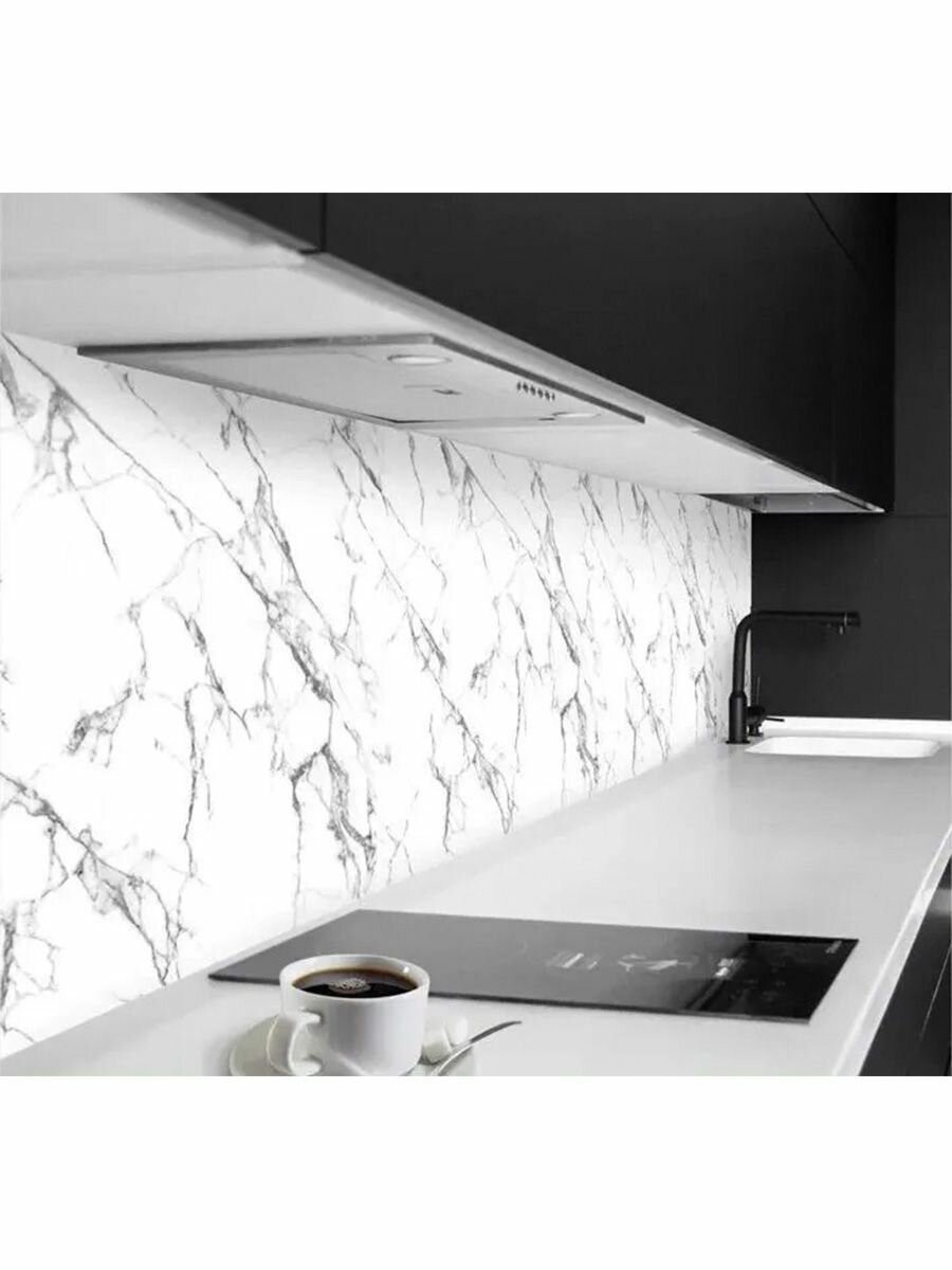 Фартук для кухни на стену 3000х600 мм, полуглянцевый Мрамор. Панель стеновая ПВХ влагостойкая декоративная