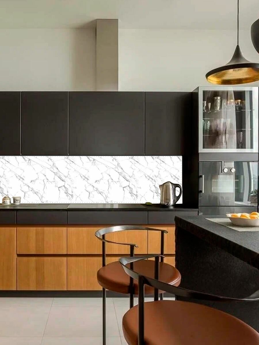 Фартук для кухни на стену 3000х600 мм, полуглянцевый Плитка Мрамор. Панель стеновая ПВХ влагостойкая декоративная