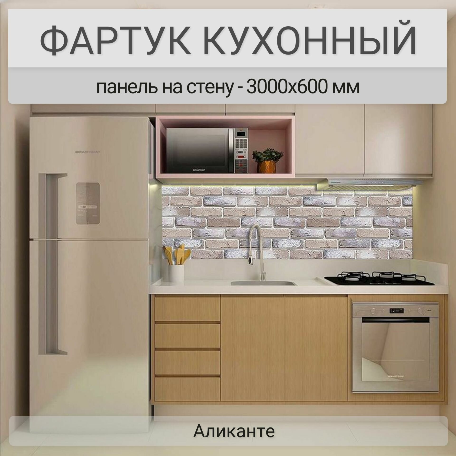 Купить Фартук для кухни на стену 3000х600 мм, полуглянцевый Аликанте. Панель стеновая ПВХ влагостойкая декоративная