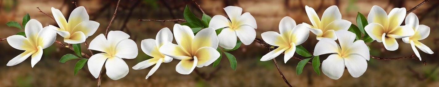 Купить Фартук для кухни на стену 3000х600 мм, глянцевый Плюмерия. Панель стеновая ПВХ влагостойкая декоративная
