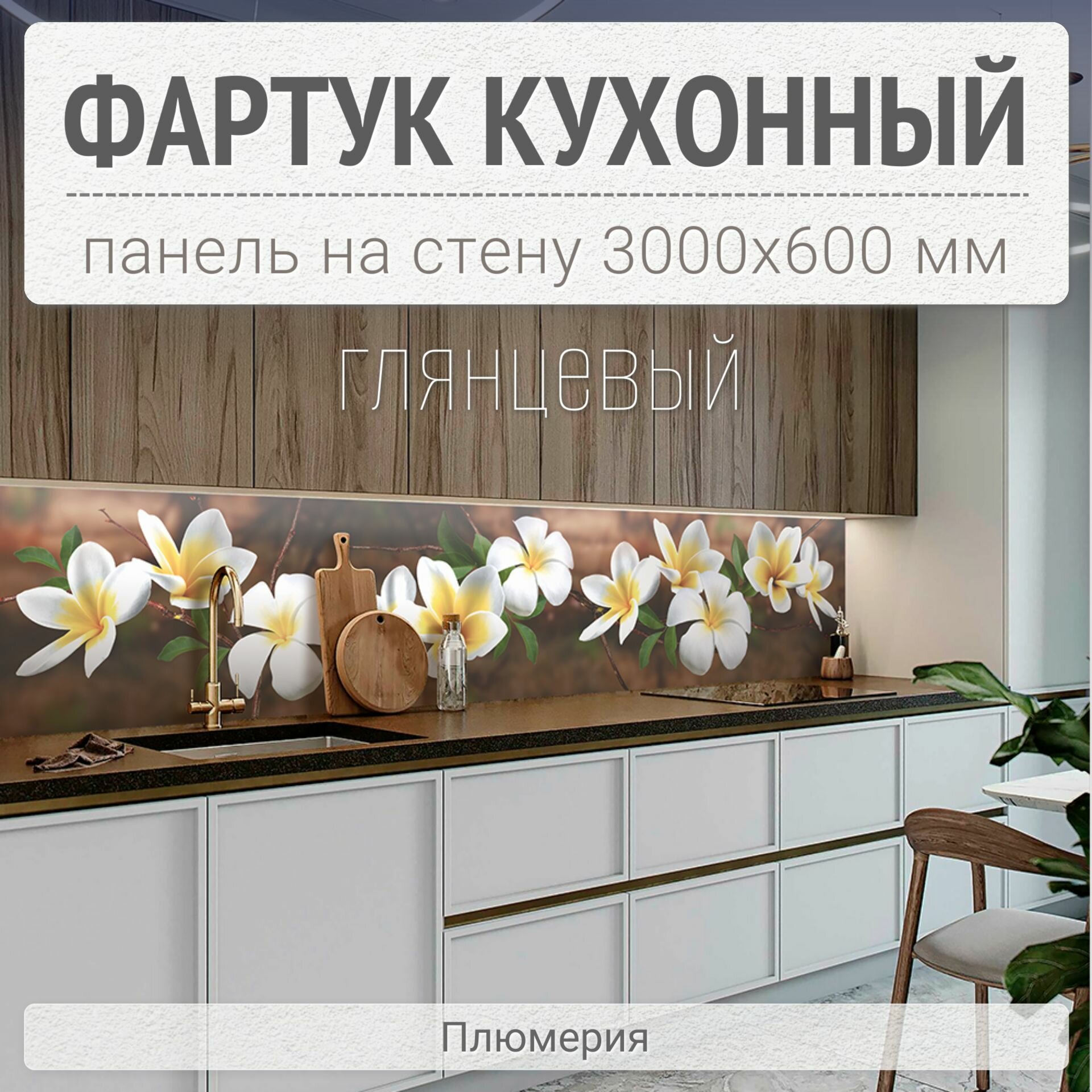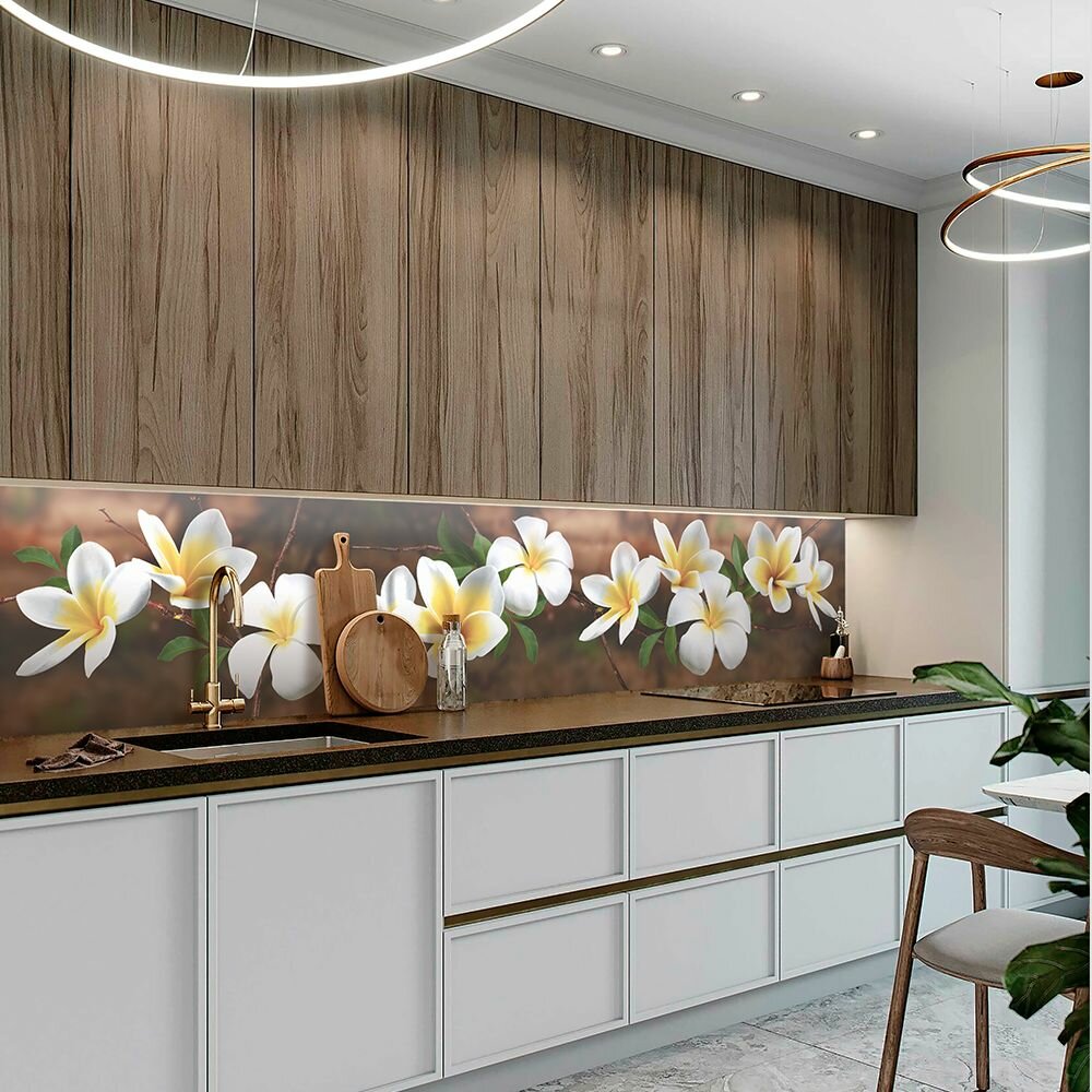 СохранитьФартук для кухни на стену 3000х600 мм, глянцевый Плюмерия. Панель стеновая ПВХ влагостойкая декоративная интересное: