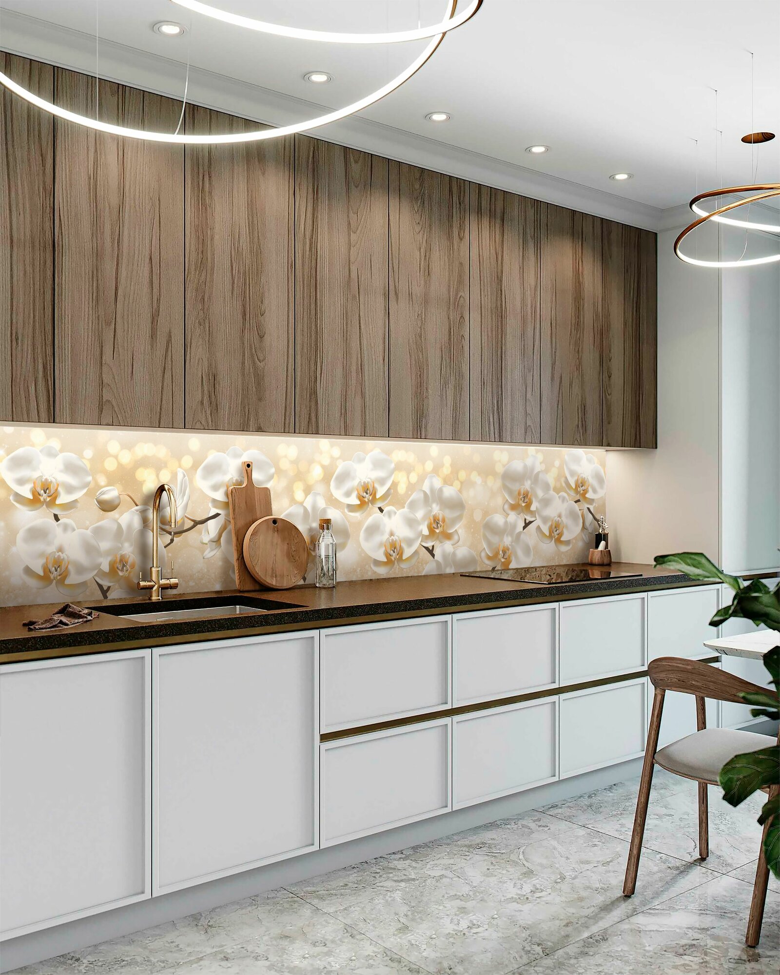 СохранитьФартук для кухни на стену 3000х600 мм, глянцевый Золотая орхидея. Панель стеновая ПВХ влагостойкая декоративная интересное: