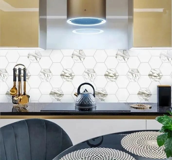 СохранитьФартук для кухни на стену 3000х600 мм, полуглянцевый Гексагон Калакатта. Панель стеновая ПВХ влагостойкая декоративная интересное: