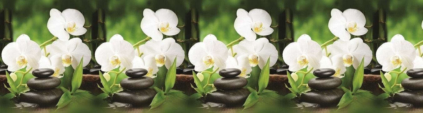 Купить Фартук для кухни на стену 3000х600 мм, полуглянцевый Белая орхидея. Панель стеновая ПВХ влагостойкая декоративная