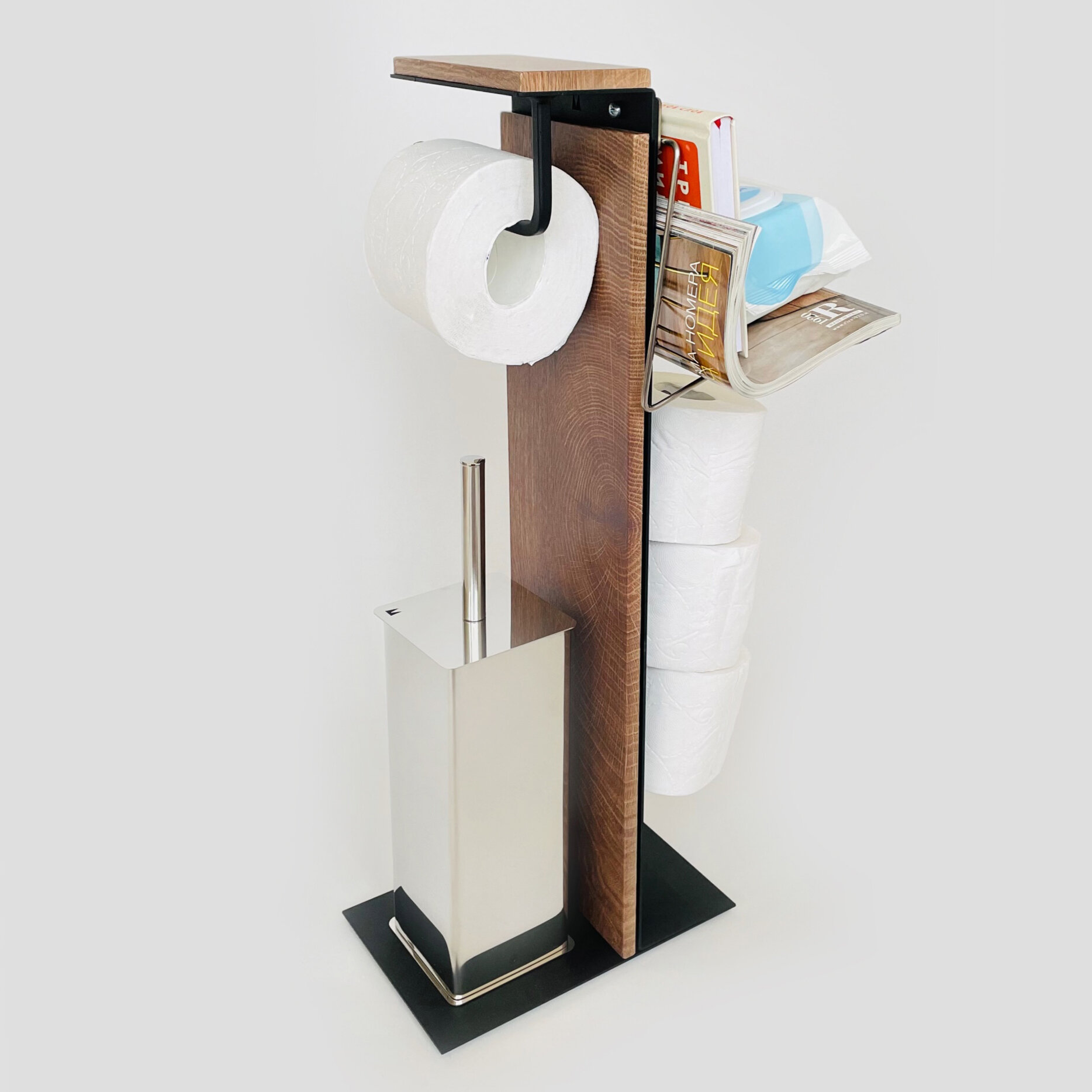 Держатель стойка для туалетной бумаги напольный Molinardi creativo "Дуб белёный" на черном "Сиано"