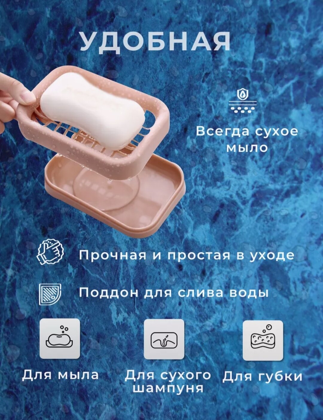 Мыльница со сливом розовая, пластиковая. с двойным решетчатым дном интересное: