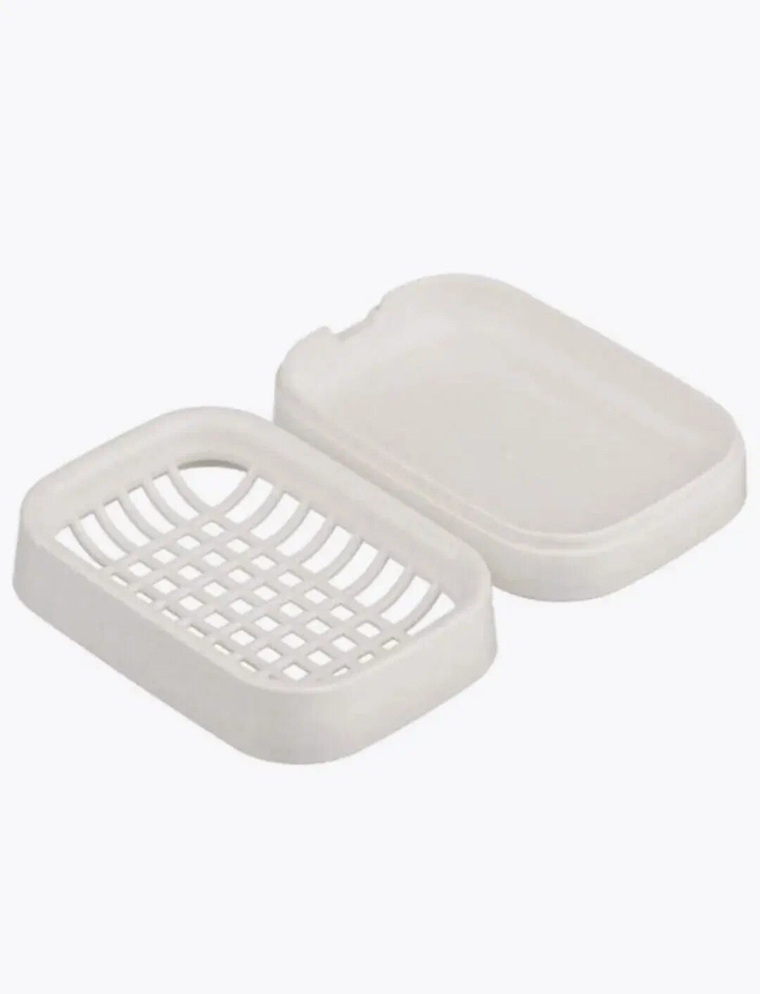Мыльница со сливом белая, пластиковая с решетчатым двойным дном