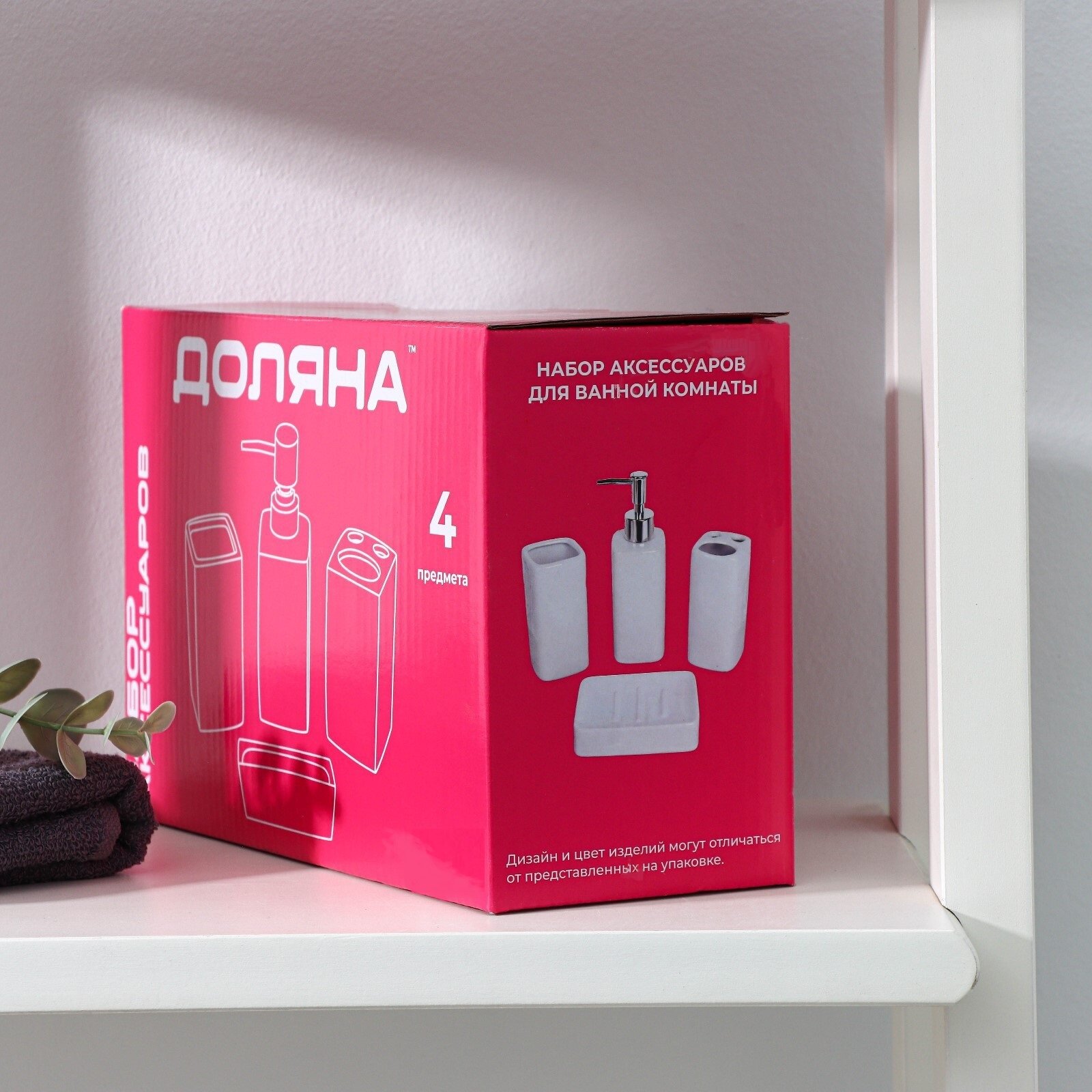 Аксессуары для ванной комнаты Доляна «Статика», набор 4 предмета, цвет белый