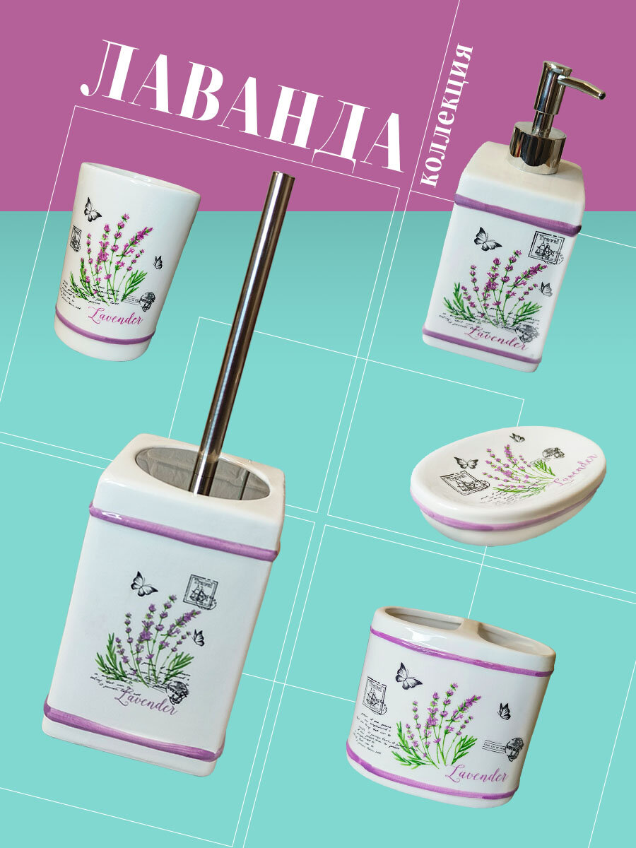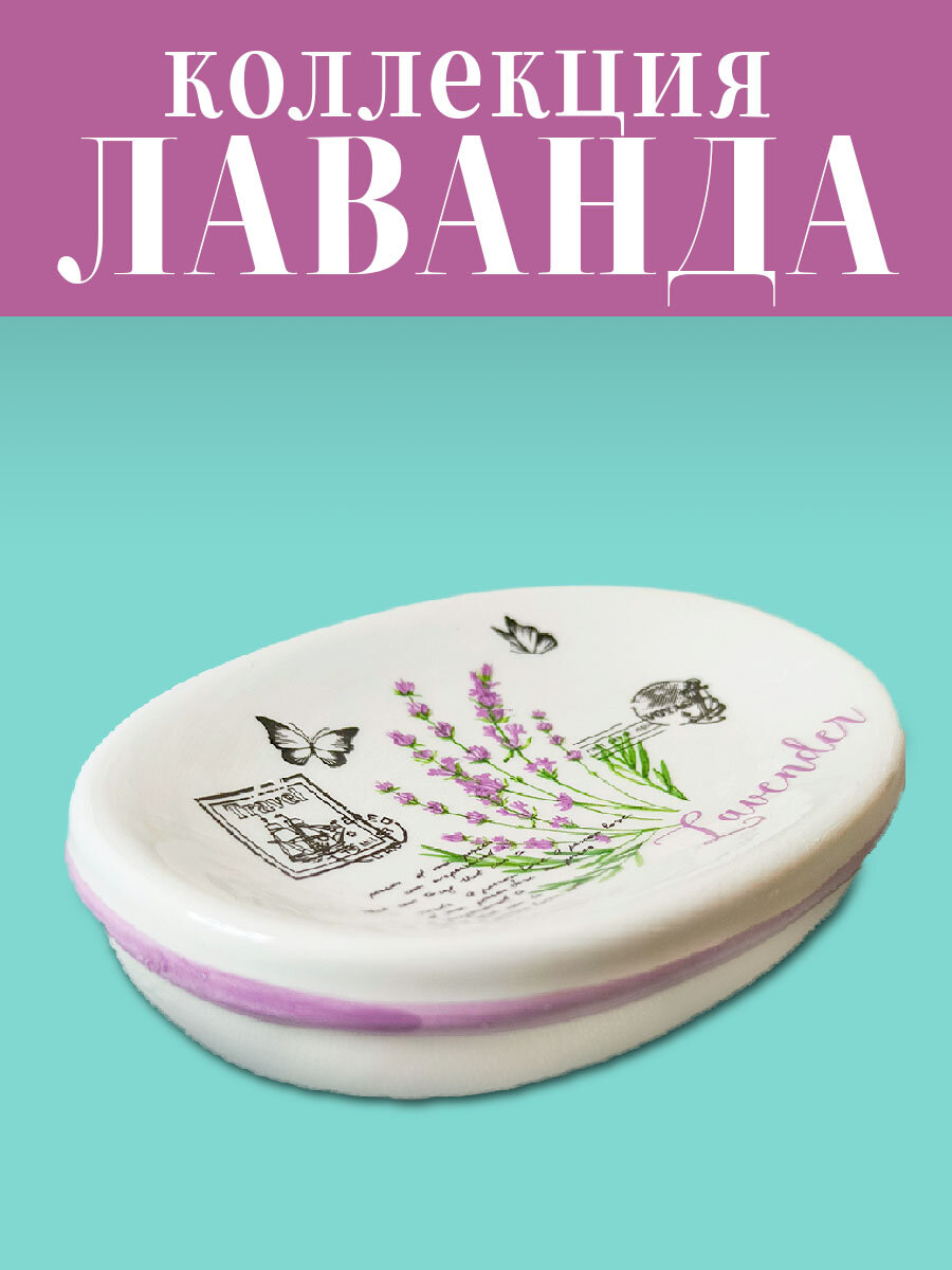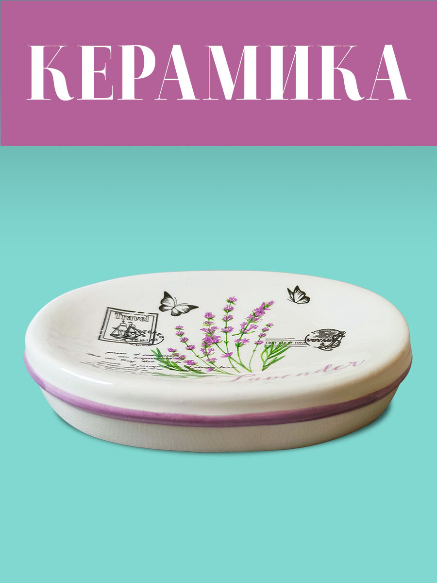Мыльница керамическая "Лаванда", овальная, для кускового мыла, настольная, белый/сиреневый интересное: