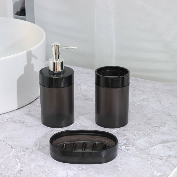 Набор для ванной комнаты, 3 предмета, цвет чёрный