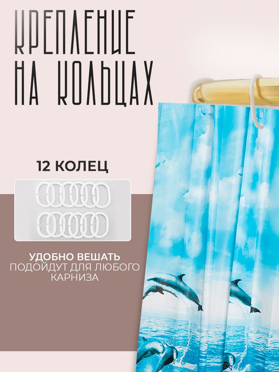 Штора для ванной комнаты Доляна «Дельфины», 180×180 см, PEVA интересное: