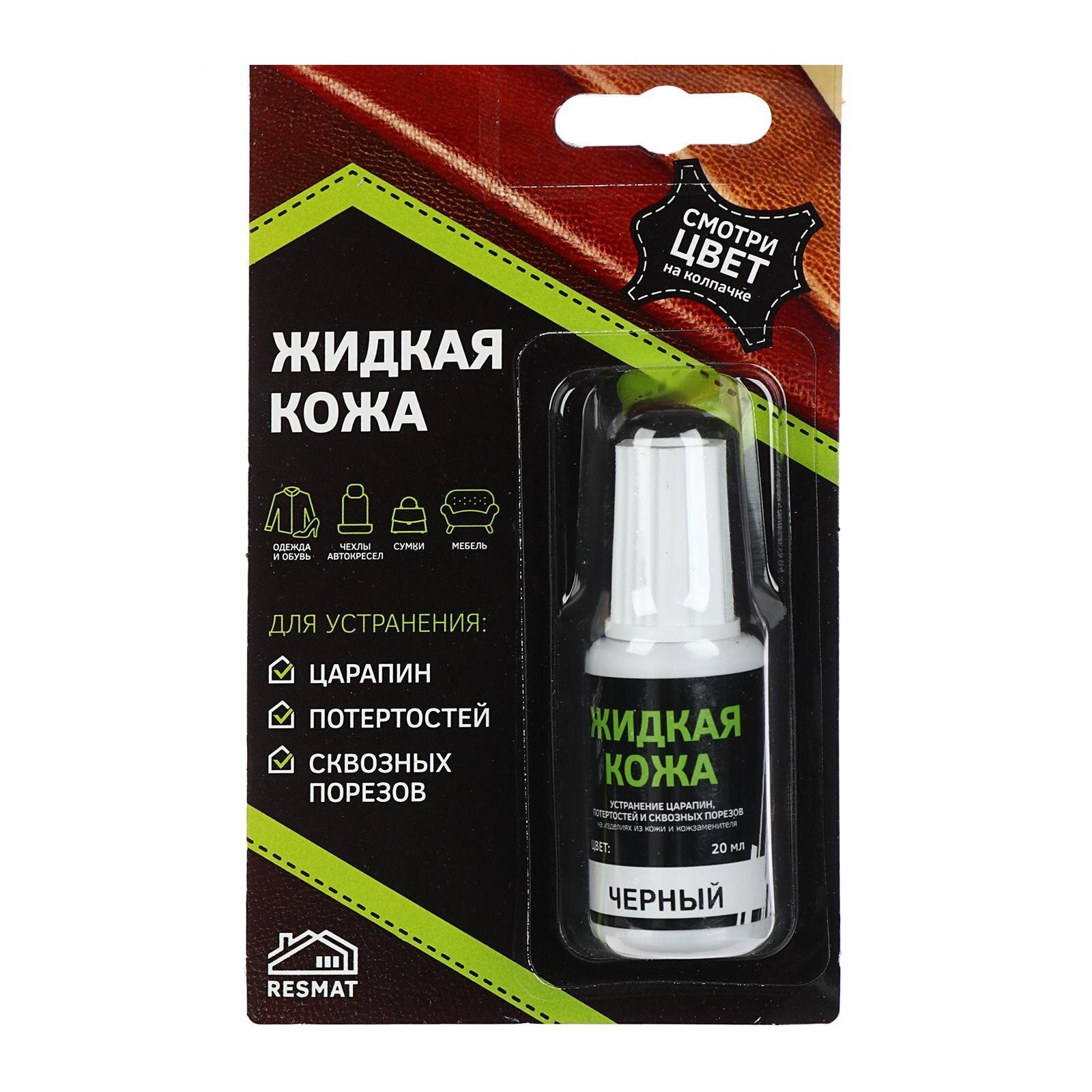 Жидкая кожа Resmat цвет черный, объем 20 мл, восстановитель для ремонта обуви, сумок, авто, мебели, кожаных изделий