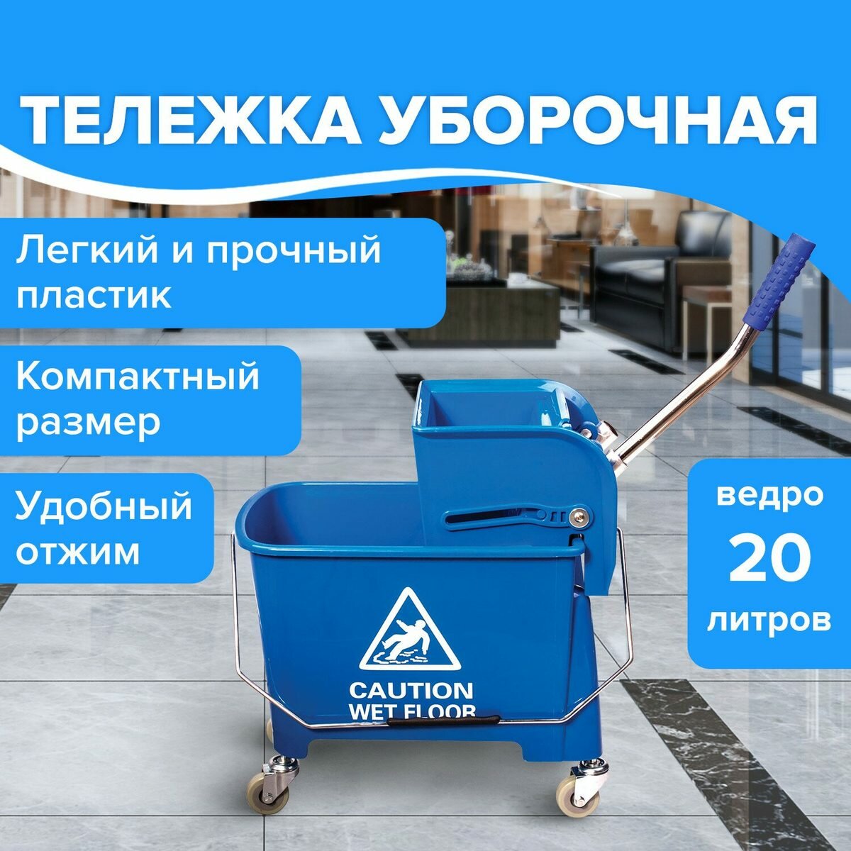 Тележка уборочная Brabix, ведро 20 л, механический отжим, универсальная для Офиса/дома, синяя, 601497
