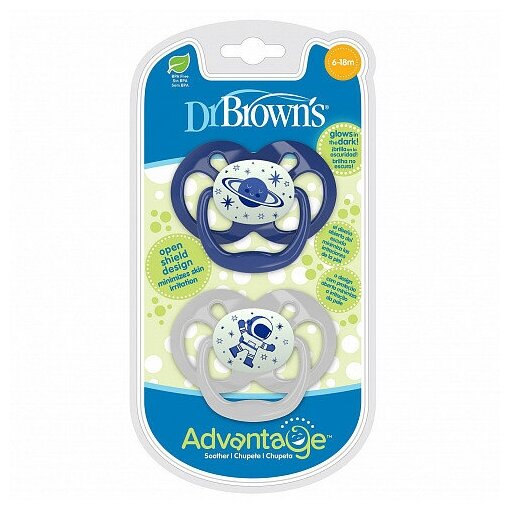 Купить Пустышка Dr.Brown's Advantage ночная 6-18 мес. 2 шт. Для мальчиков