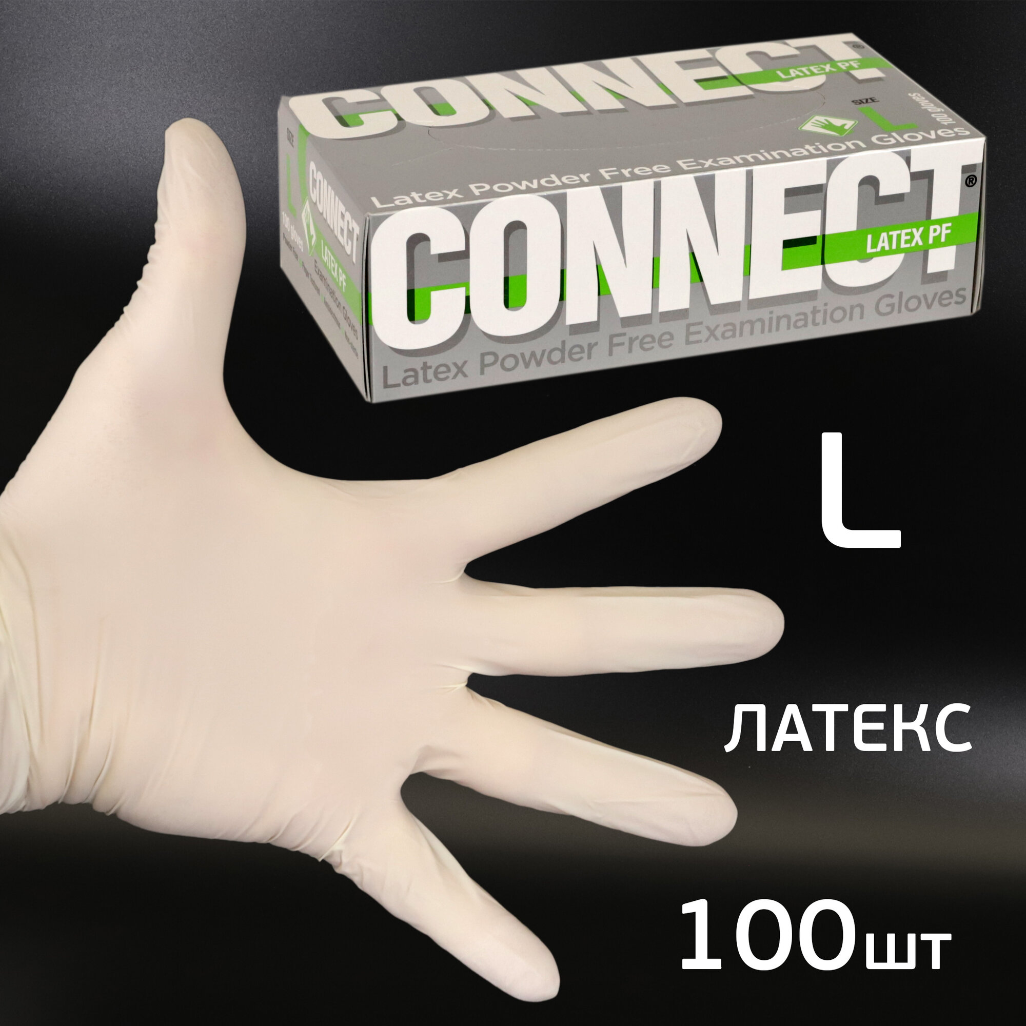 Перчатки смотровые латексные CONNECT, 50 пар (100 штук), размер L (большие), -