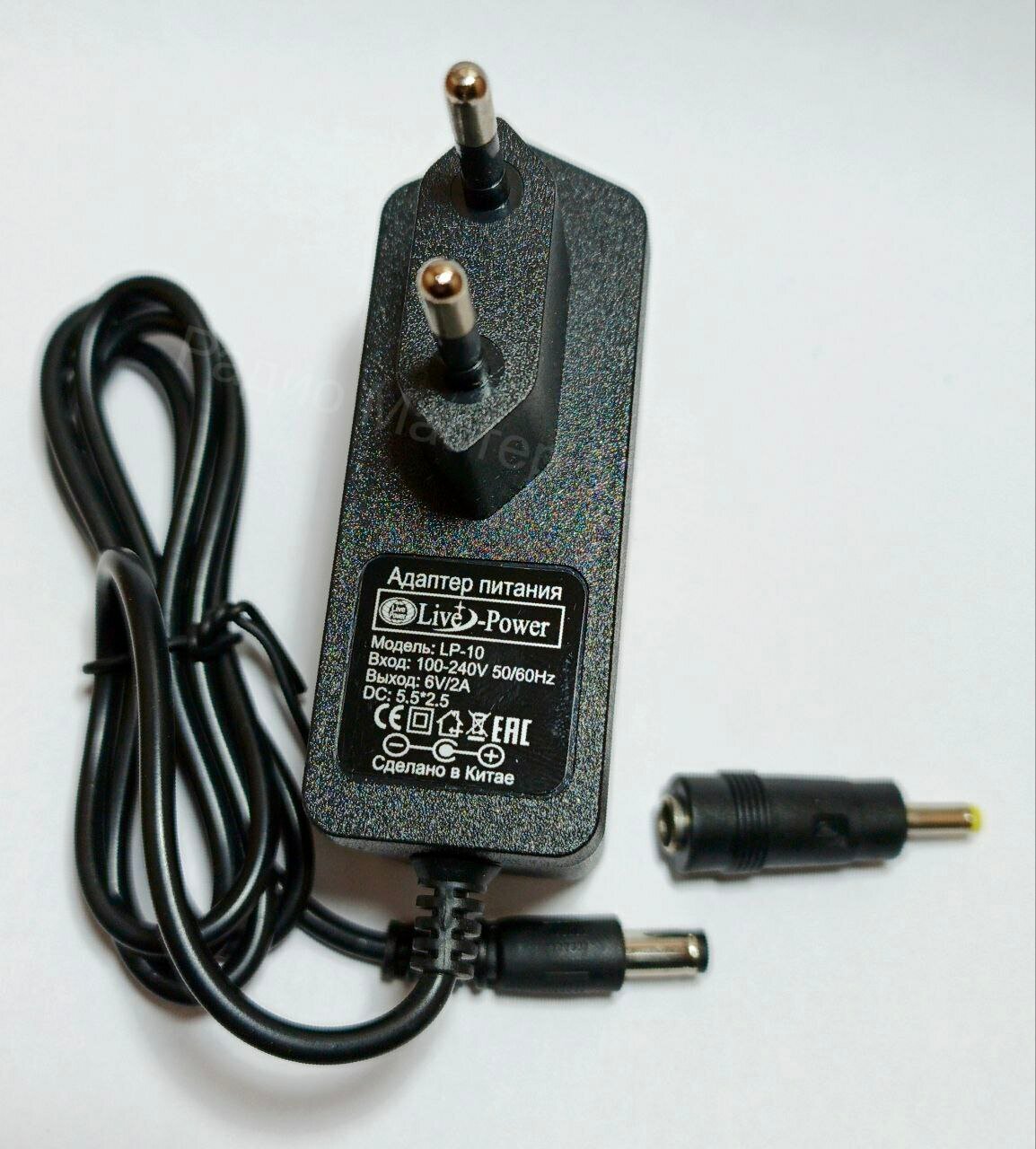 Блок питания для тонометра OMRON и AND, 6V 2A + в комплекте 2 переходника (4.0*1.7 и 3.5*1.35), длина шнура 1,2м