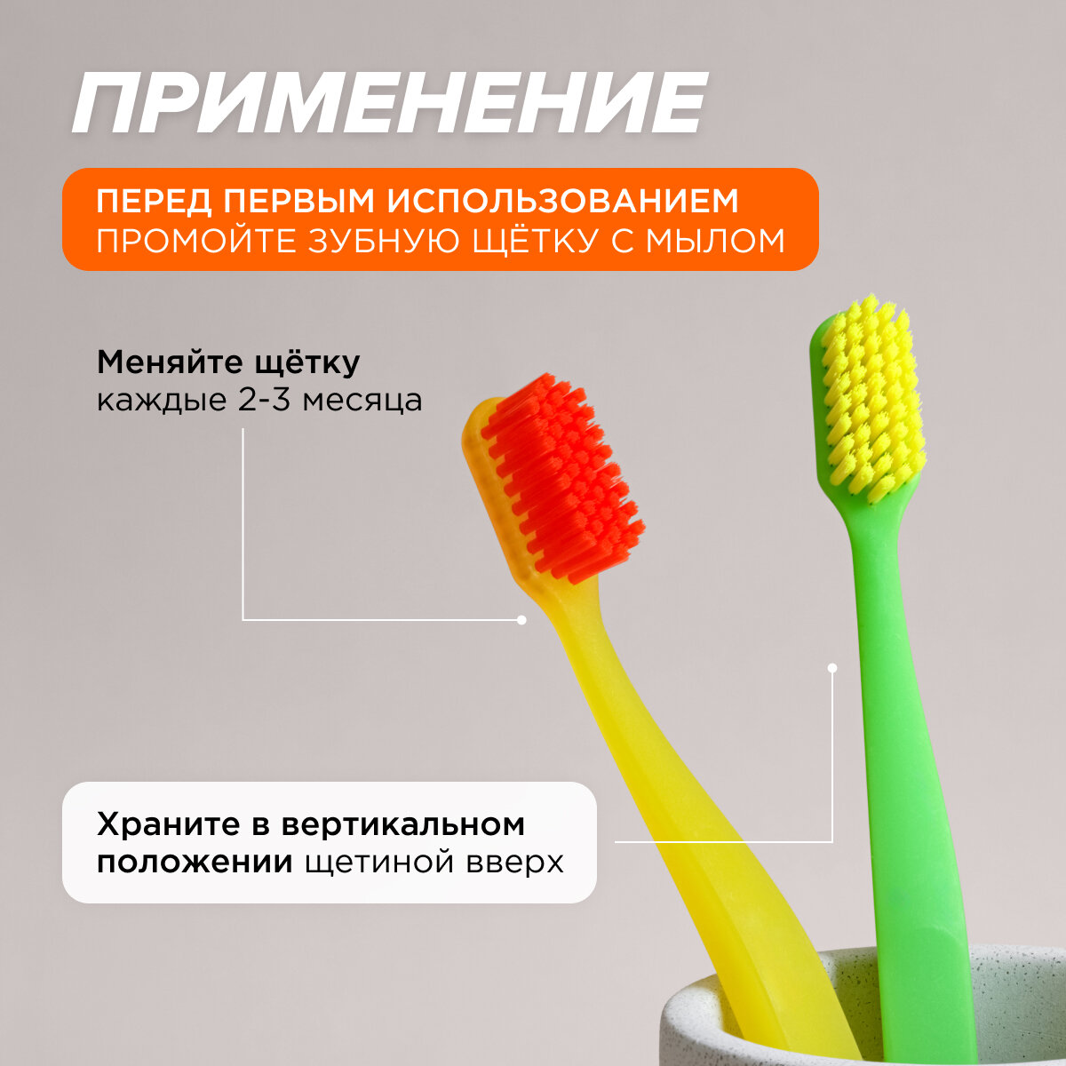 | Дополнительная информация | перед применением новую зубную щётку промыть в тёплой воде с мылом, хранить щётку в вертикальном положении щетиной вверх, рекомендуемый срок использования: 2–3 месяца |