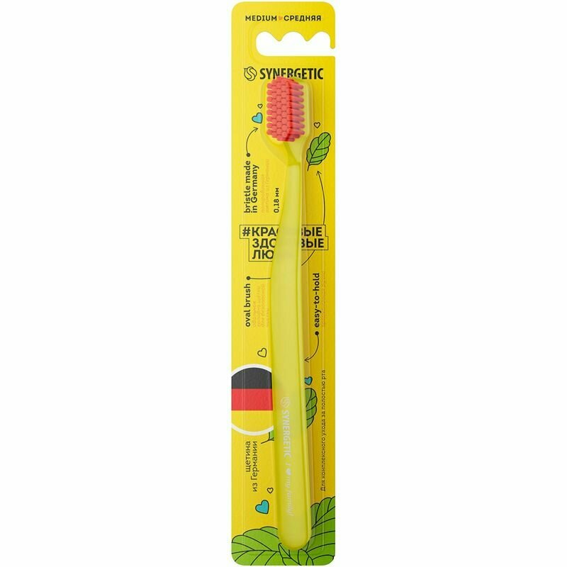 Купить Зубная щетка Synergetic JBrush, для взрослых, средняя жесткость, пластик, желтая