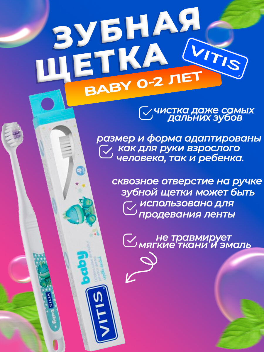 Зубная щетка детская Vitis Baby 0+, для детей от 0, очень мягкая