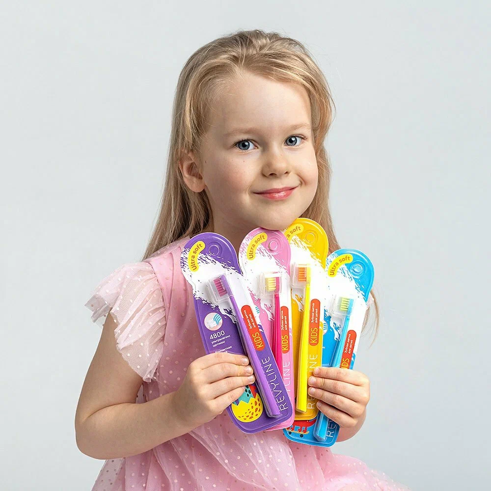 Детская зубная щетка Revyline "Kids S4800", 4шт, мягкая, пластик, разноцветная