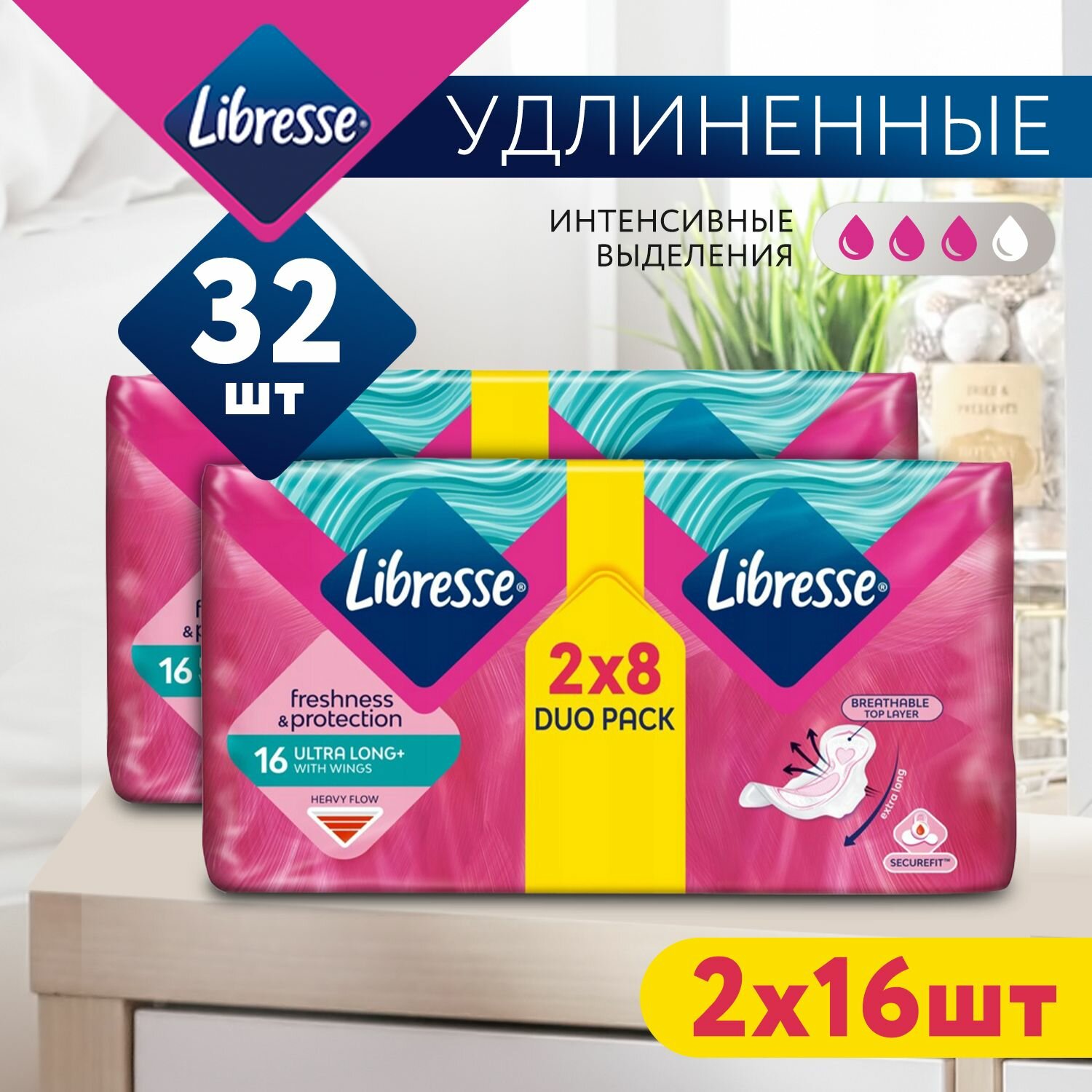 Оригинальные гигиенические прокладки женские Libresse Ultra Long+ с крылашками, 32 шт (2 уп по 16 шт), удлиненные и без ароматизаторов 3 капли интересное:
