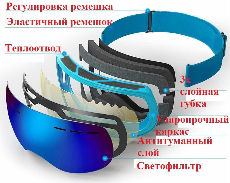 | Дополнительная информация | Двухслойные противотуманные сферические лыжные очк |