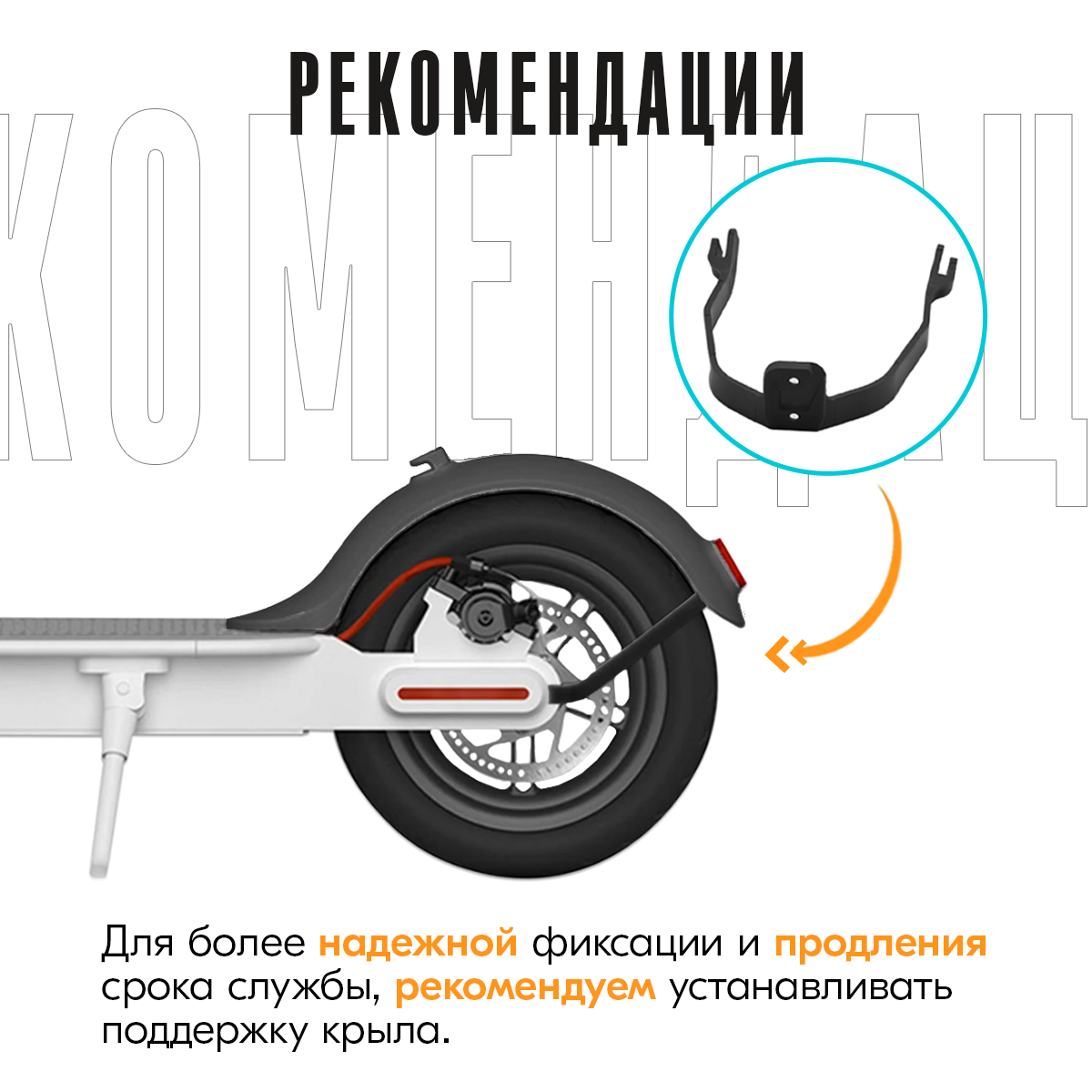 Заднее крыло для Xiaomi Mi Electric Scooter M365 / Pro / 1S / Aovo M365Pro / Aovo M1 (без фонаря) белый