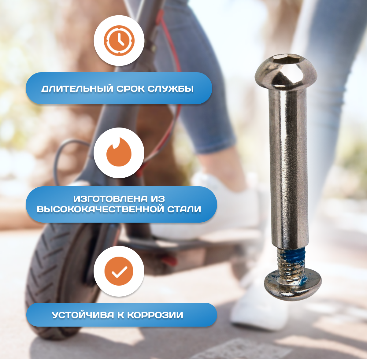 Ось для самоката 8 мм, длинна без шляпки 34 мм серебристая, VeloSmile интересное: