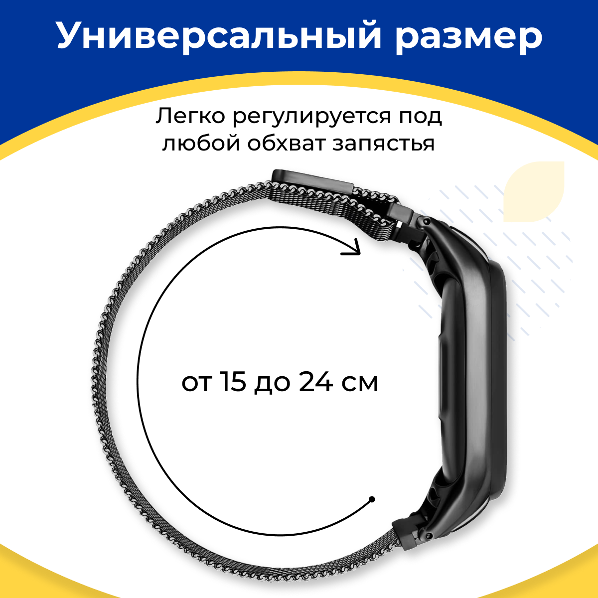 | Дополнительная информация | Гипоаллергенный ремешок из нержавеющей стали, с магнитным замком, абсолютно комфортный в ежедневной носке, лёгкий, гибкий, универсальный. Ремешок не ржавеет, не меняет цвет. Размер удобно регулируется. |