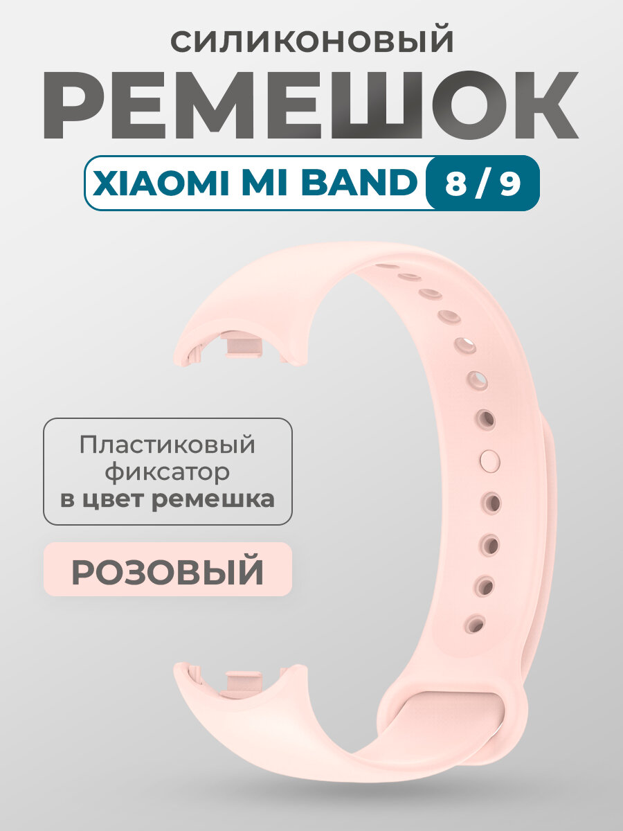 Купить Силиконовый ремешок для Xiaomi Mi Band 8/9, с пластиковым фиксатором, розовый