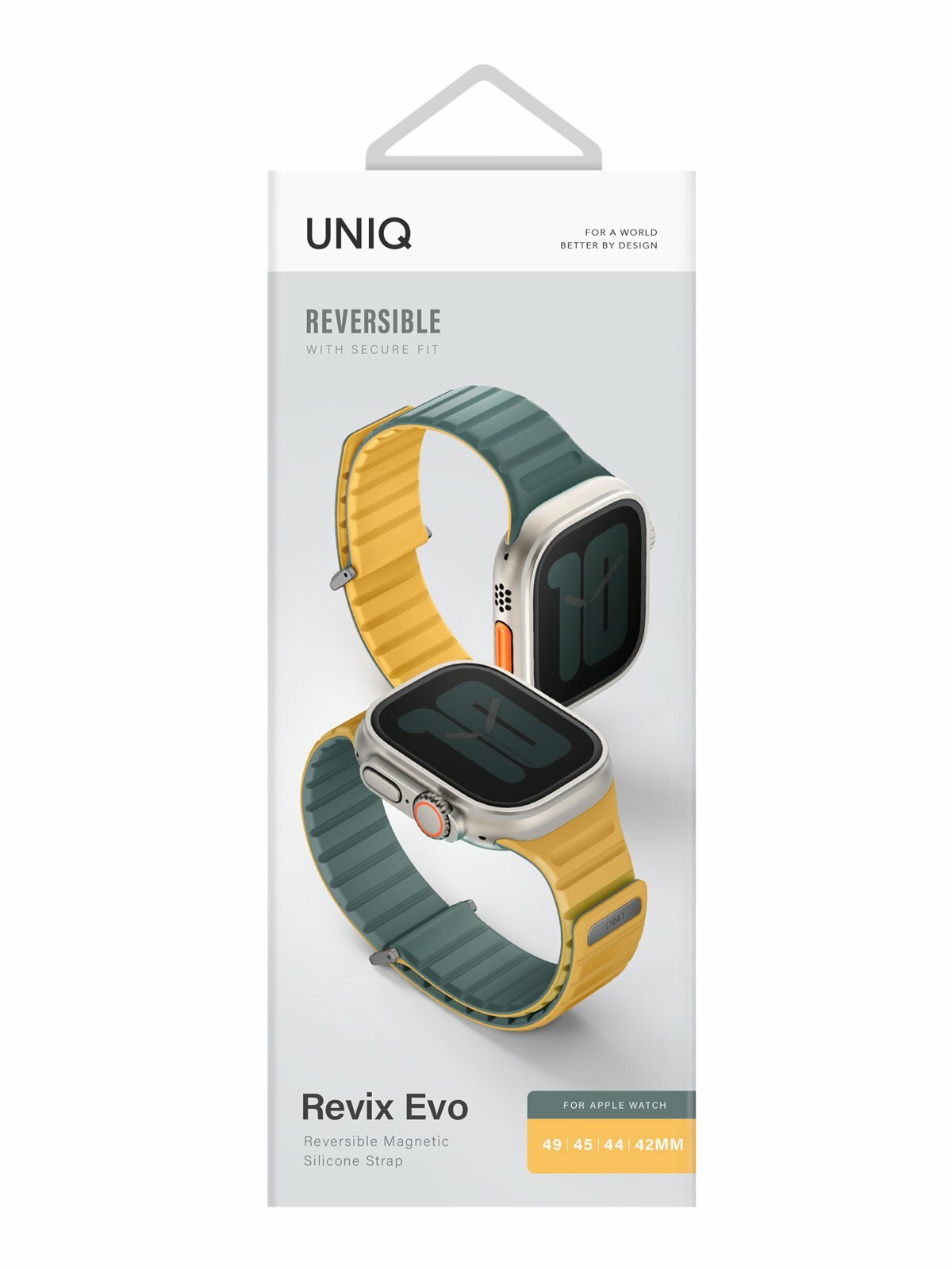 Uniq для Apple Watch 49/45/44/42 mm ремешок Revix EVO reversible Magnetic Viridian Green/Burnt Yellow