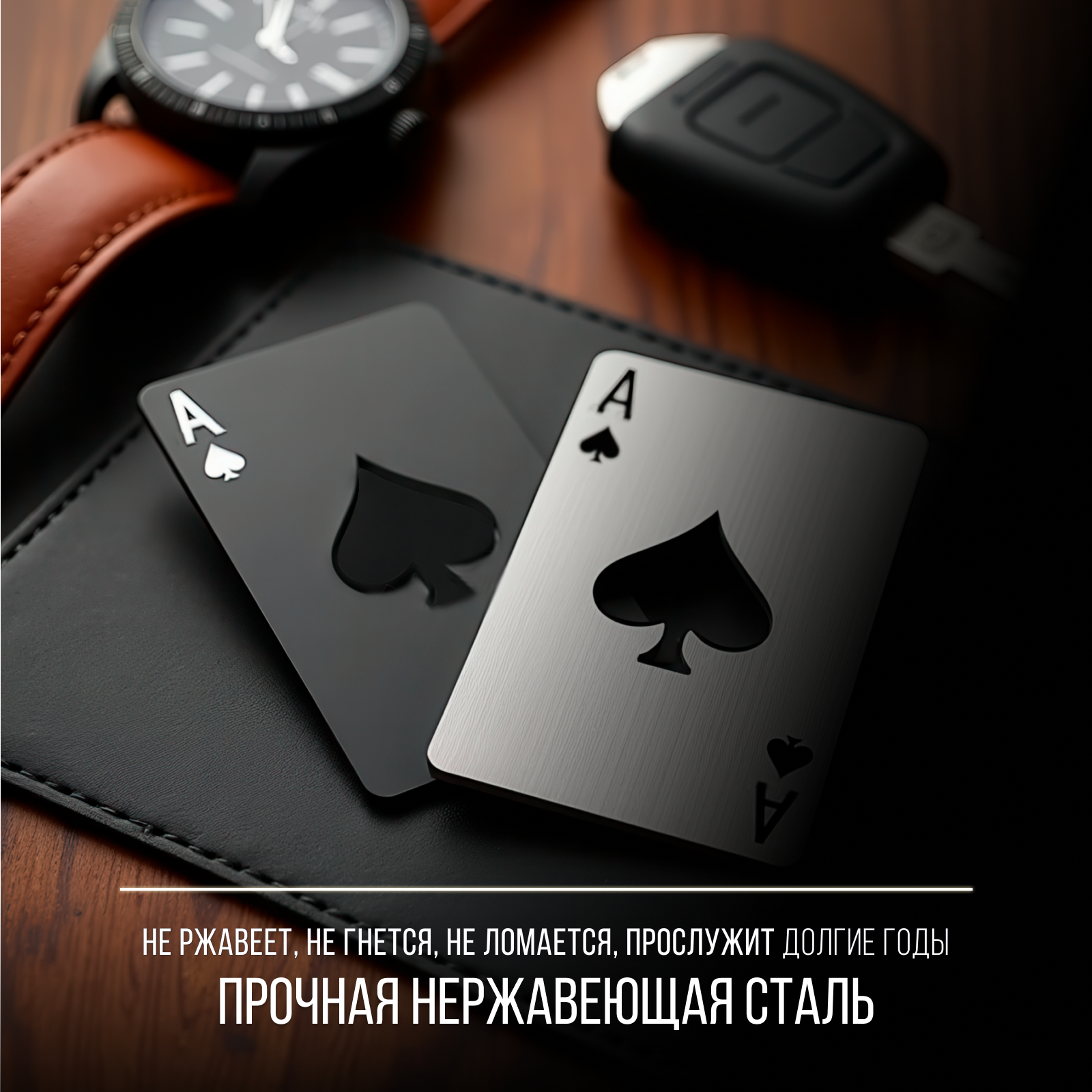 Металлическая открывалка - карта "Пиковый Туз", для пива, нержавеющая сталь, 2шт.