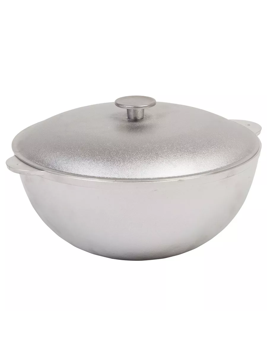 Казан Алюминиевый Литой Татарский 8л d320 h148 с Крышкой Полукруглое Дно Гардарика 08-2