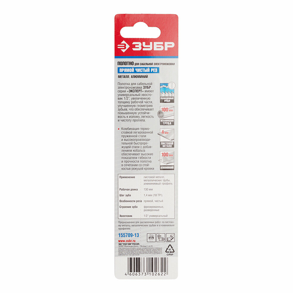 Купить Полотно ЗУБР "эксперт" S922EF для сабельной эл. ножовки Bi-Met, тонколист, профил металл, нерж. сталь, цв. металл 130/1,4мм