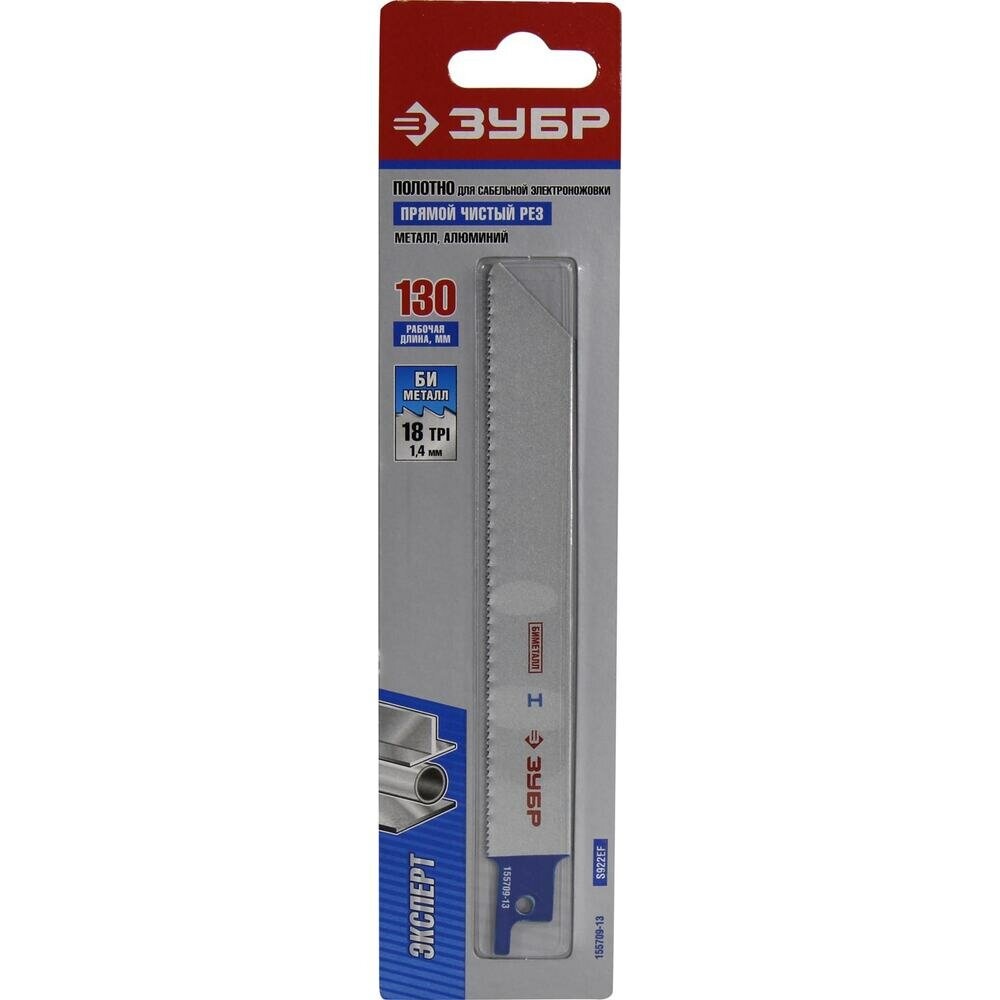 Полотно ЗУБР "эксперт" S922EF для сабельной эл. ножовки Bi-Met, тонколист, профил металл, нерж. сталь, цв. металл 130/1,4мм