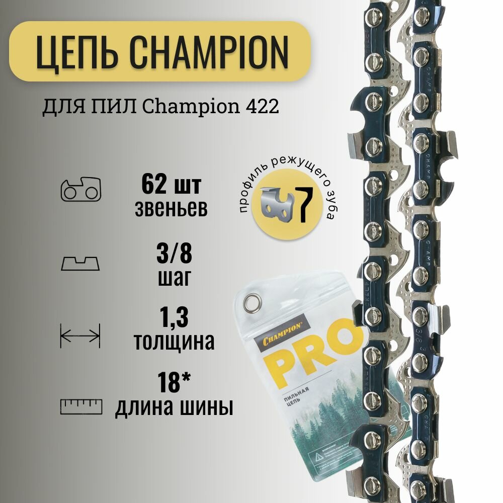 Цепь для бензопилы / цепь пильная PRO L 3/8", Ширина паза 1.3 мм, 53 звена CHAMPION