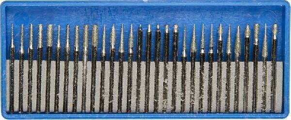 Набор алмазных мини-насадок для гравера ЗУБР 30 шт, хвостовик d 3 мм, Р 150 - 180, 33383-H30