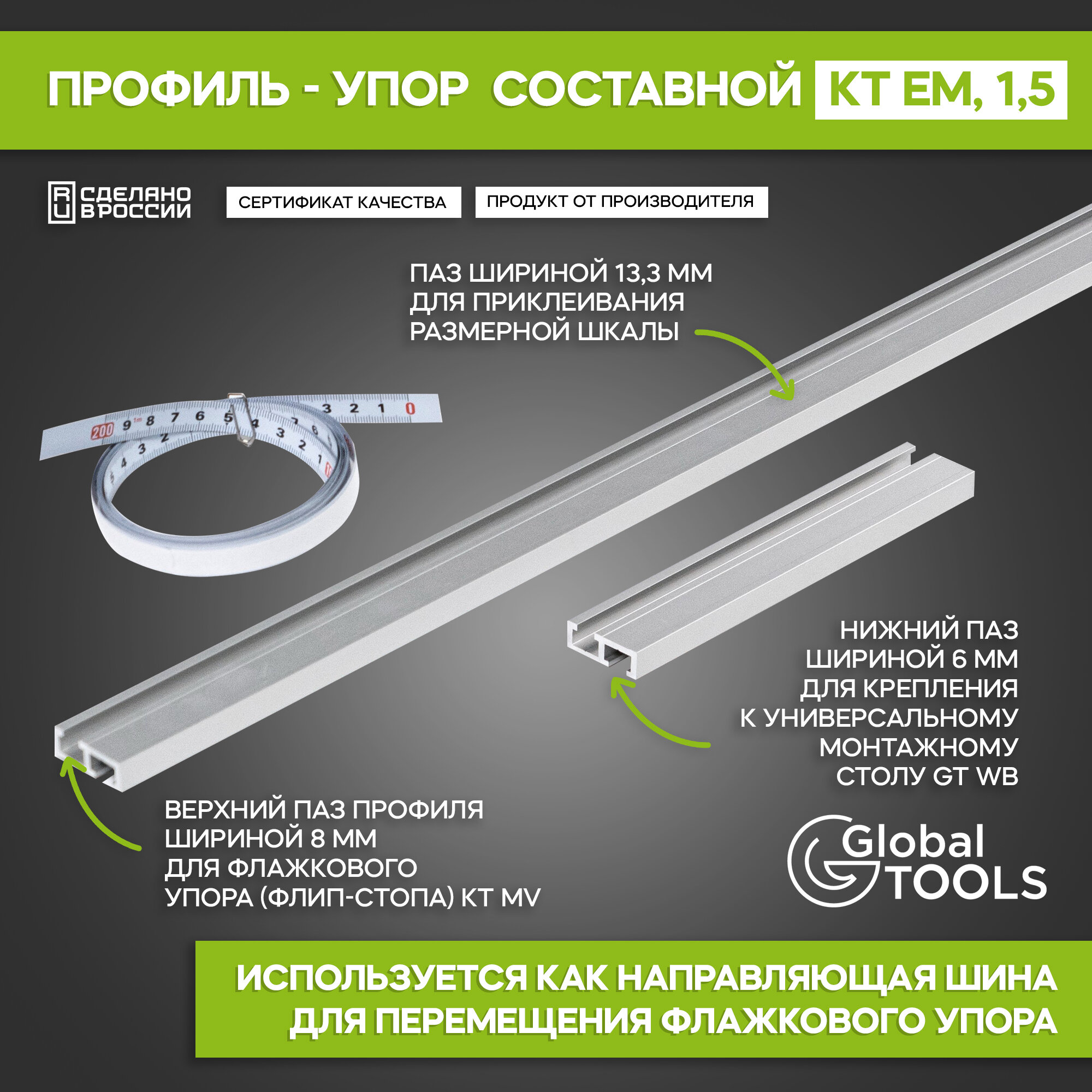 Профиль-упор со шкалой KT EM, анод, составной, длина 1.3 + 0.2 м, 0.9 кг интересное: