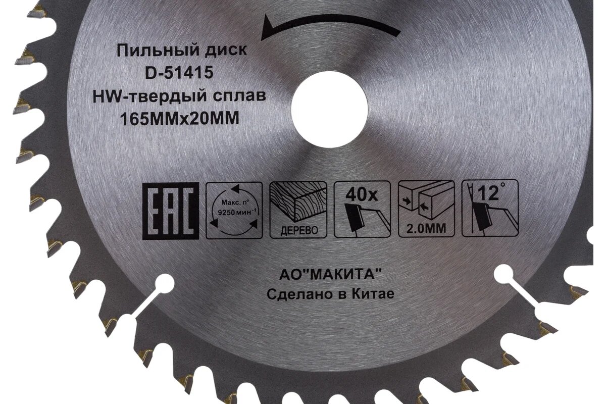 Диск пильный для дерева (165x20x1.2 мм, 40T) Makita D-51415 интересное: