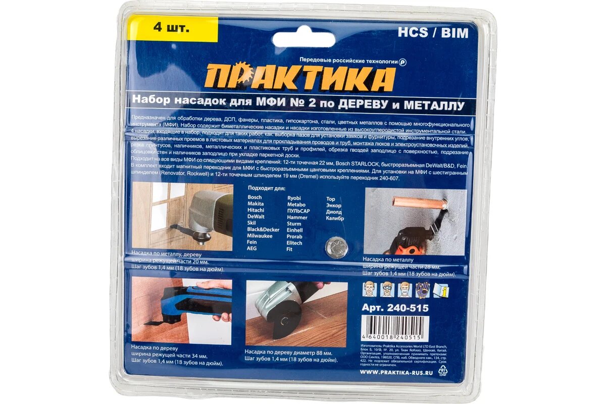 Насадки для МФИ / реноватора ПРАКТИКА набор 4 шт комбинированный №2 в блистере (240-515).