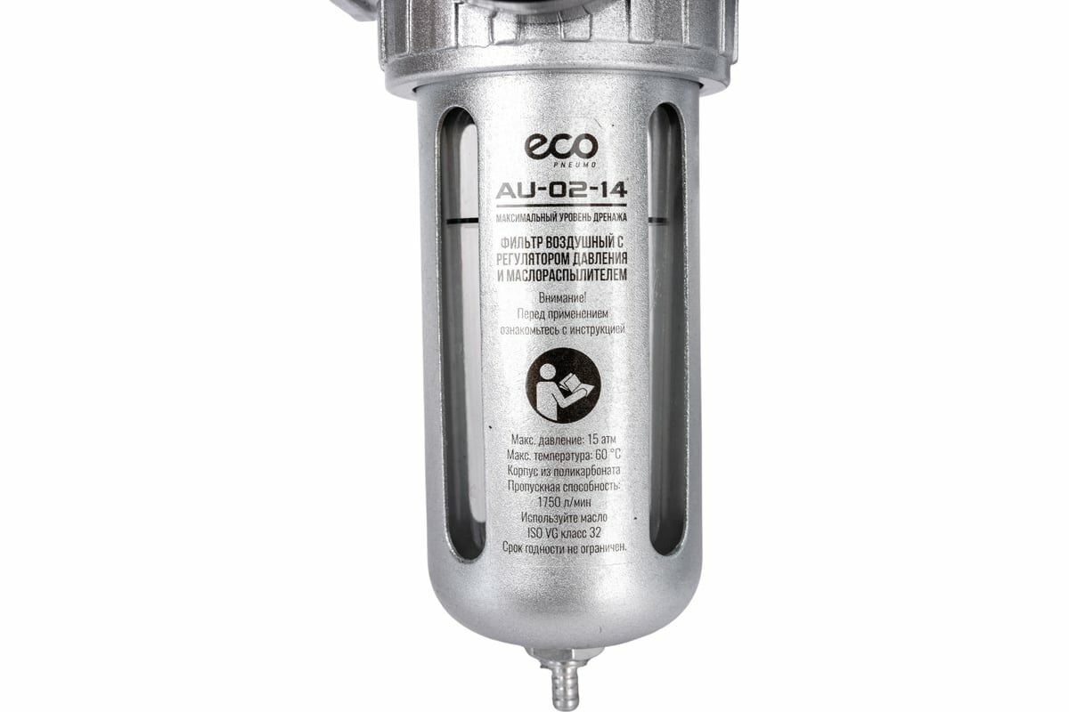 Фильтр воздушный ECO AU-02-14 с регулятором давления и маслораспылителем (1/4", 1750л/мин) (AU-02-14)